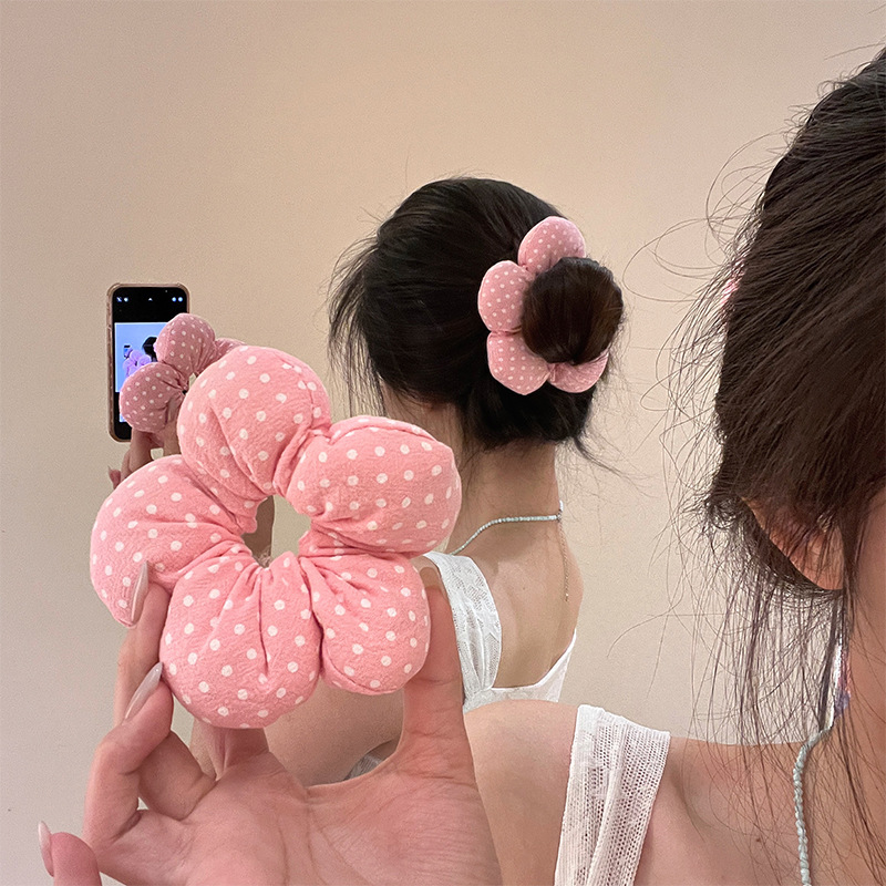 한국식 웨이브 도트 3 차원 꽃 머리 반지 귀여운 공 머리 달콤한 기질 소녀 헤어 소시지 링 헤어 액세서리