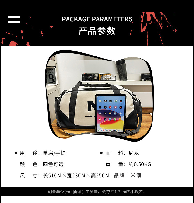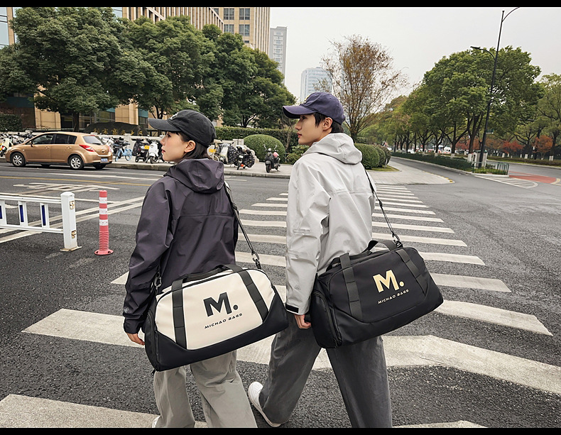 새로운 스타일의 피트니스 가방 대용량 편지 인쇄 경량 건조하고 젖은 별도의 수하물 가방 편리한 어깨 크로스 바디 여행 가방