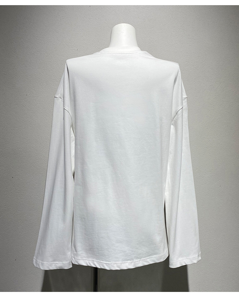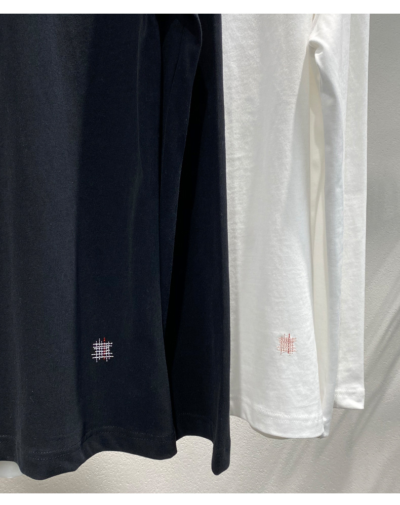 스팟 2025 봄 여름 새로운 틈새 패치워크 자수 블랙 긴팔 티셔츠 루즈 슬리밍 여성용 다용도 탑스토어 가기