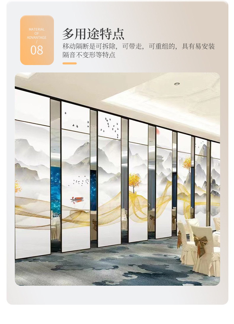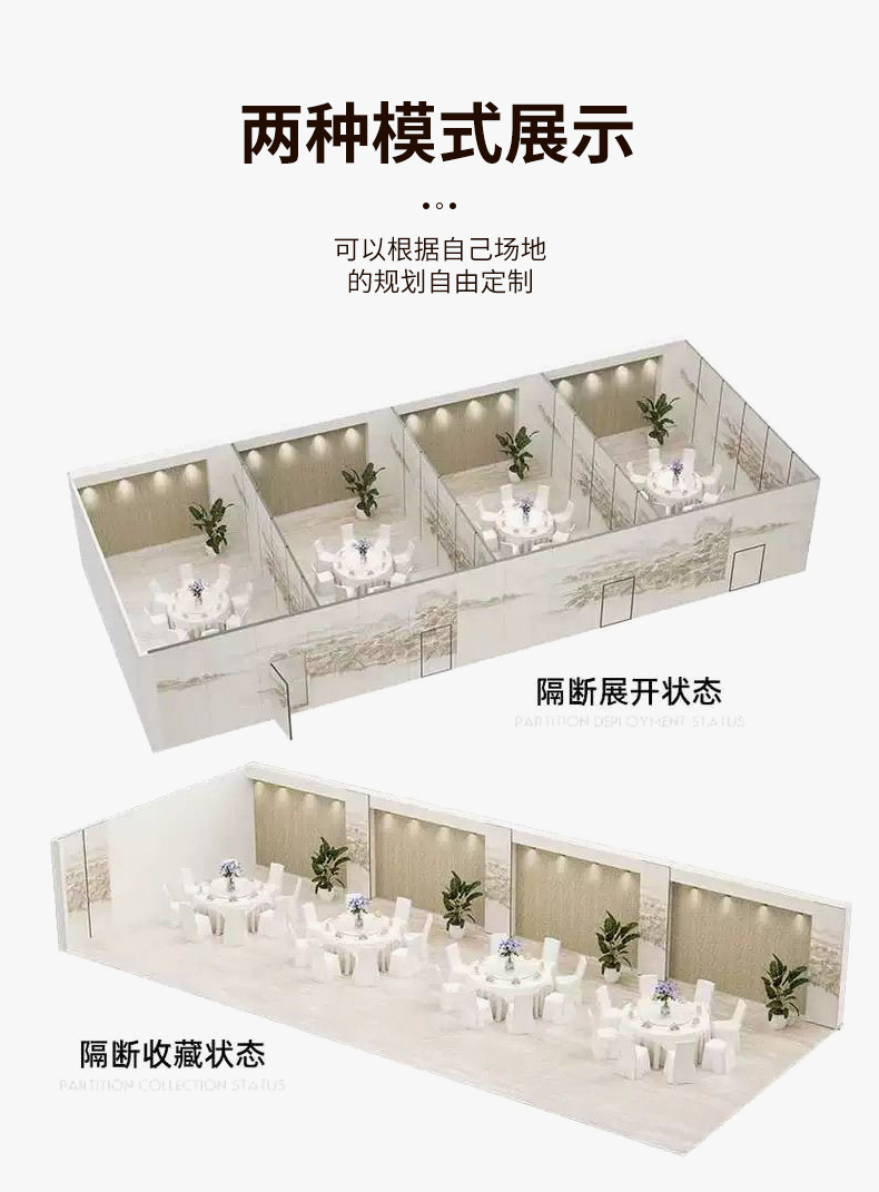 호텔 모바일 파티션 벽 호텔 박스 스크린 연회 홀 사무실 방음 이동식 파티션 패널 접는 문