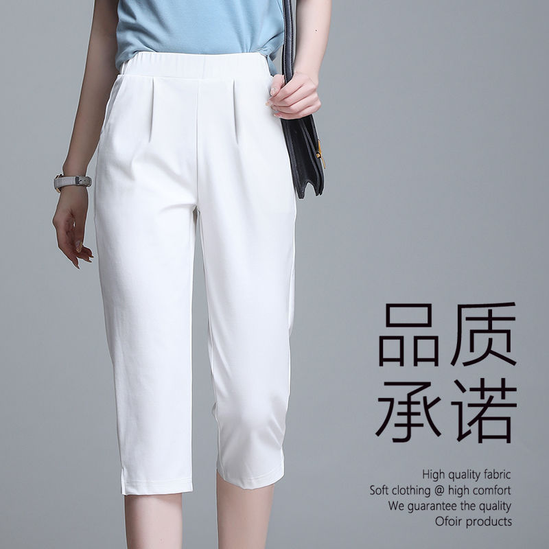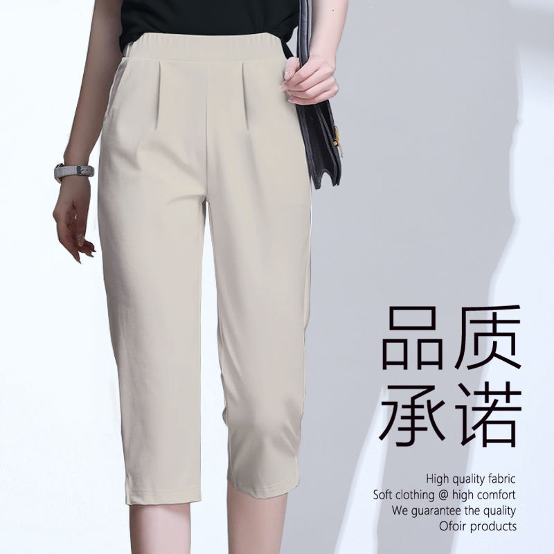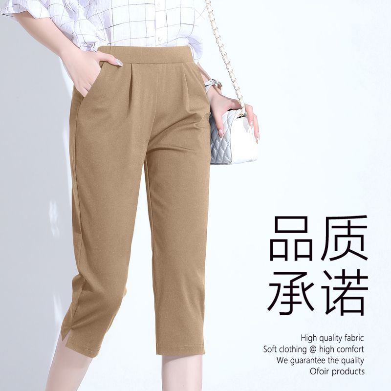 자른 바지 여자 여름 얇은 2024 새로운 도착 플러스 사이즈 아이스 실크 여자 바지 캐주얼 할란 바지 5 점 중간 바지 짧은 바지
