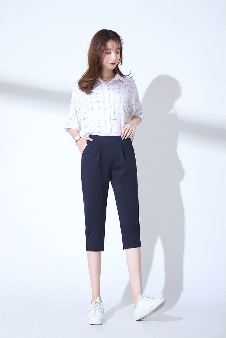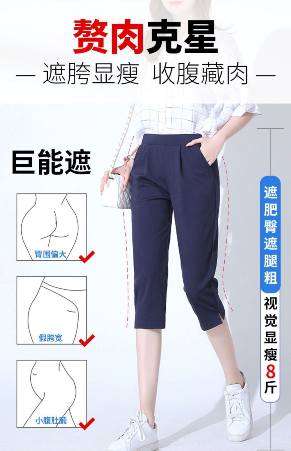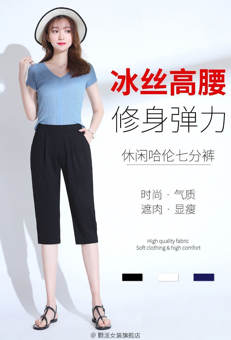 자른 바지 여자 여름 얇은 2024 새로운 도착 플러스 사이즈 아이스 실크 여자 바지 캐주얼 할란 바지 5 점 중간 바지 짧은 바지스토어 가기