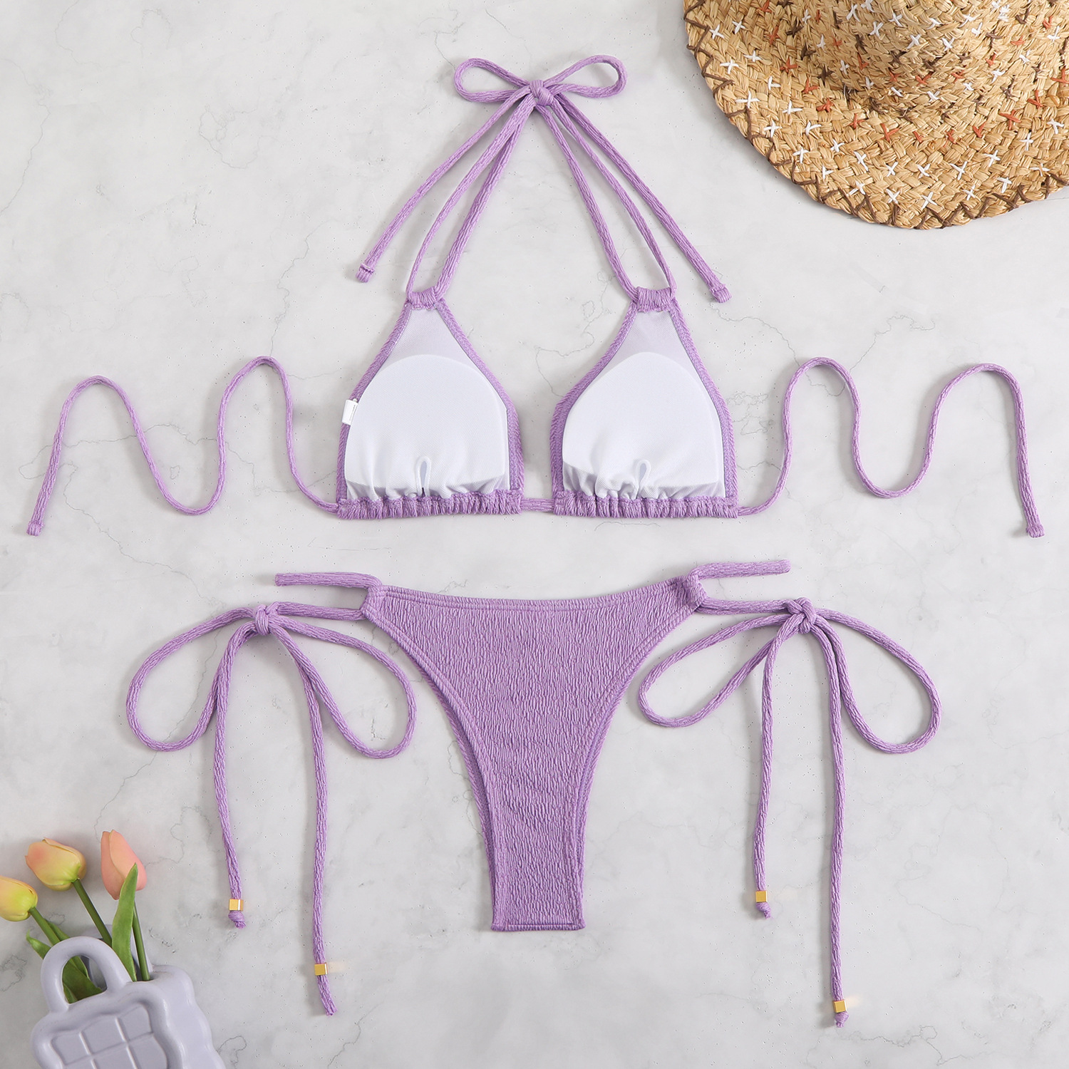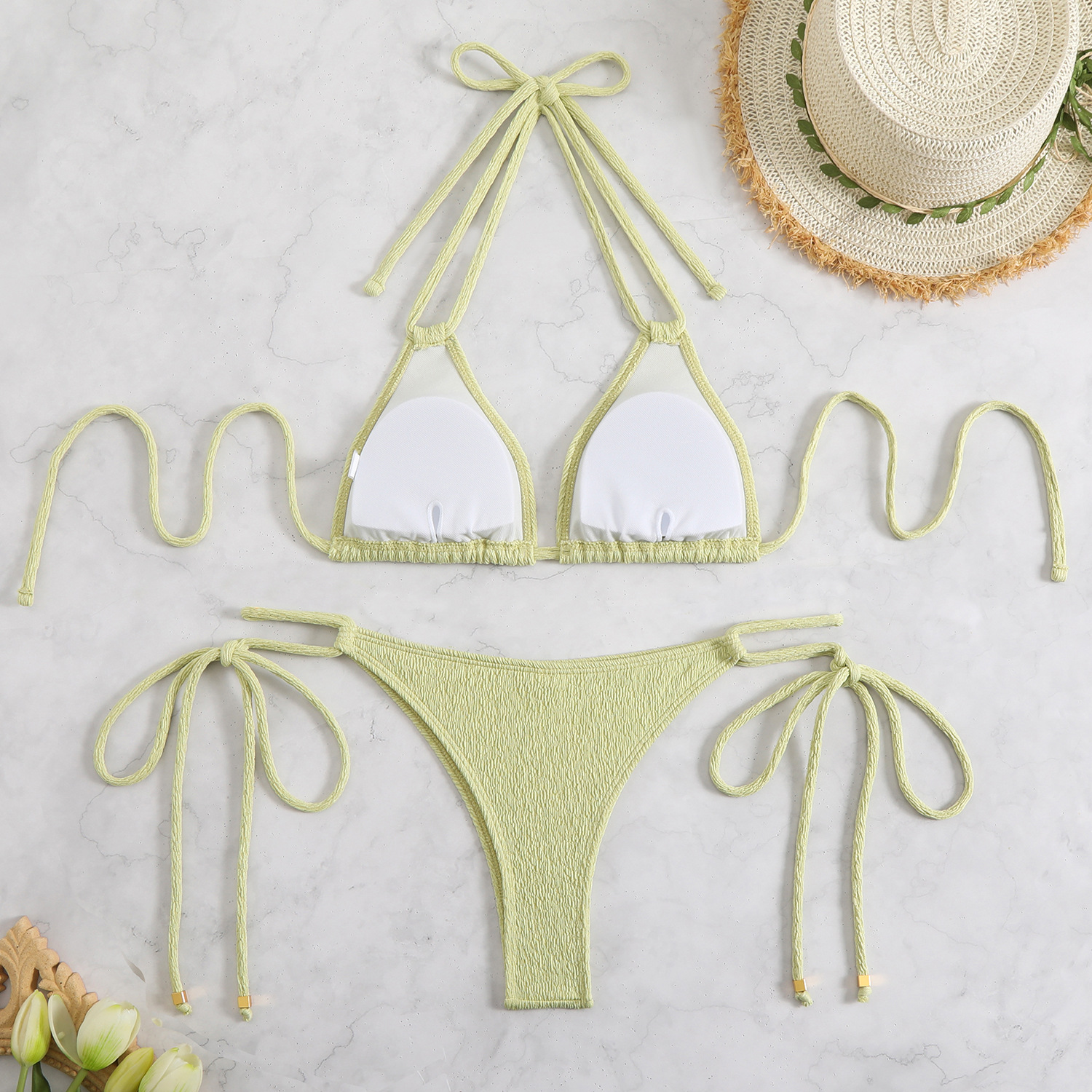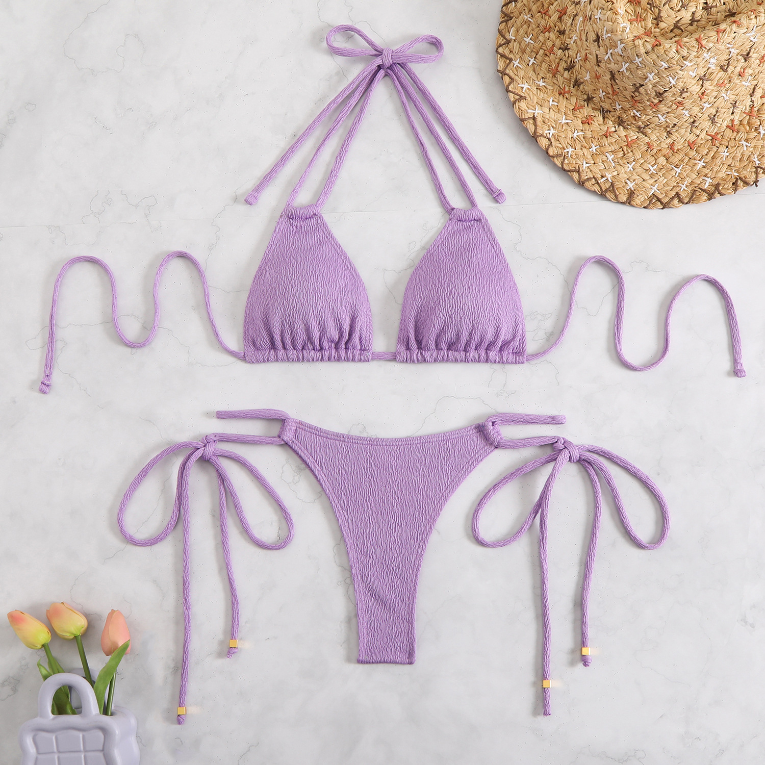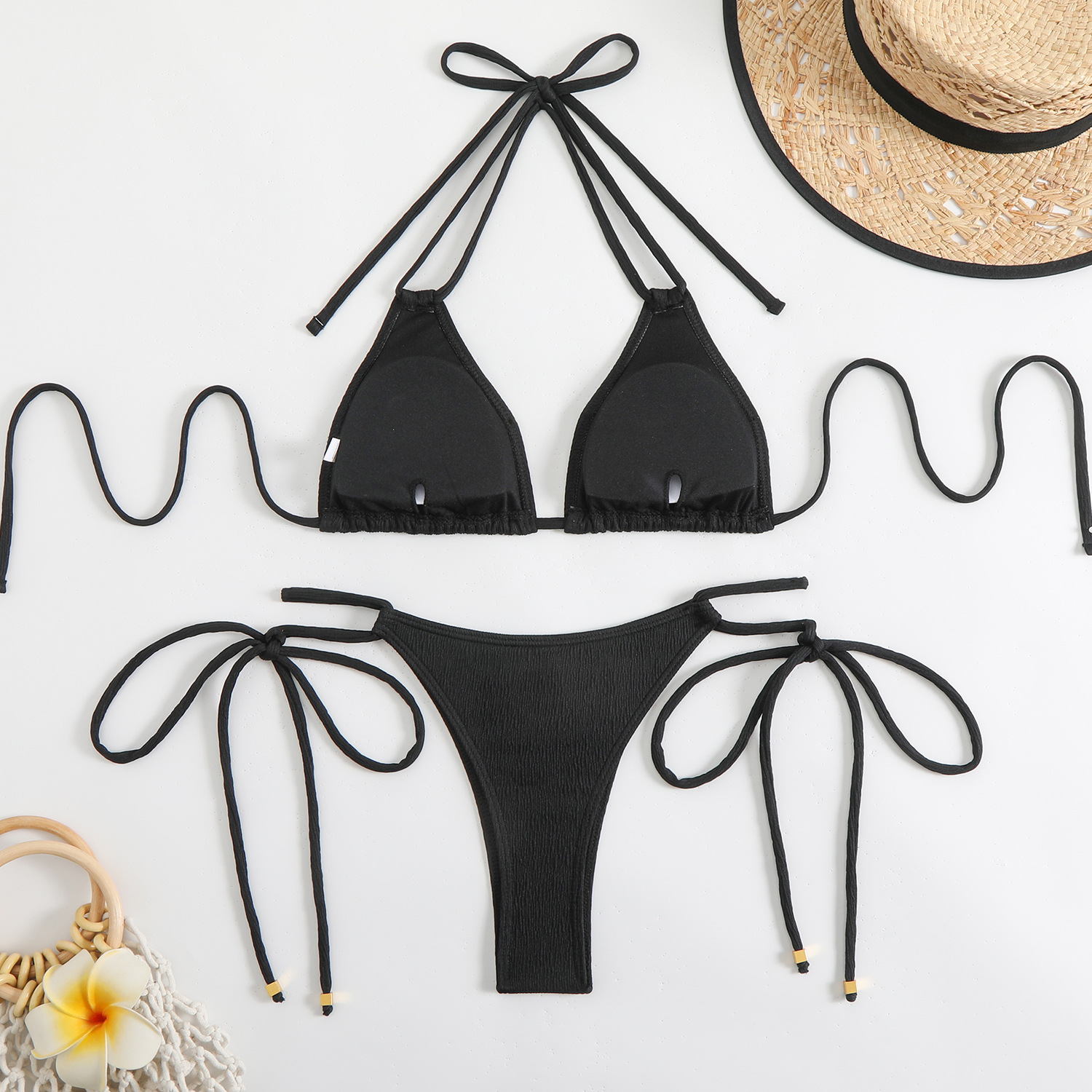 2025 솔리드 컬러 새로운 하이 엔드 3 점 섹시 스플릿 수영복 여성 유럽 및 미국 비치 휴가 수영복 비키니스토어 가기