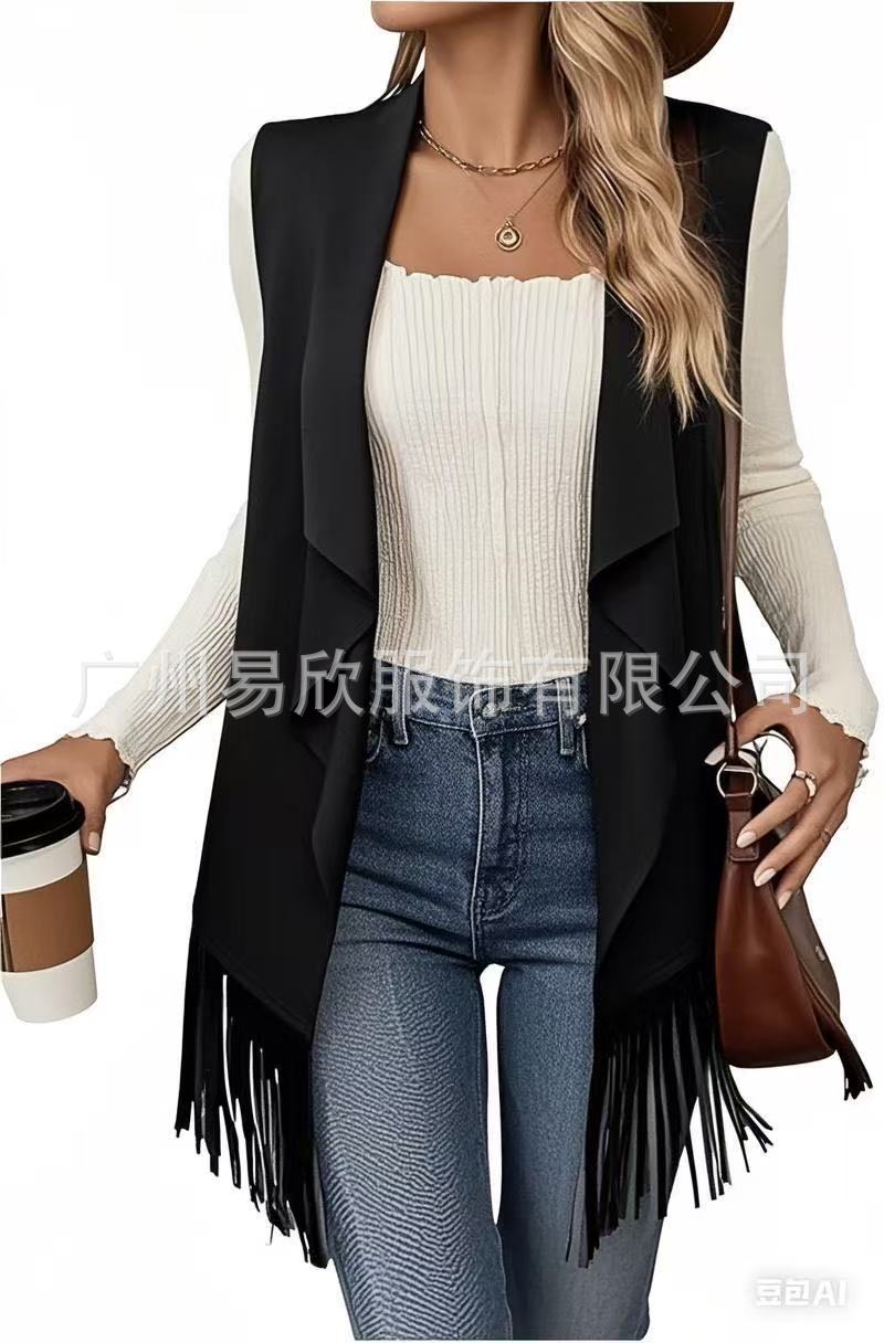 아마존 여성 술 민소매 가짜 스웨이드 70 년대 히피 카디건 재킷 코트 탑 조끼