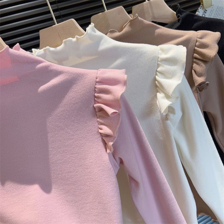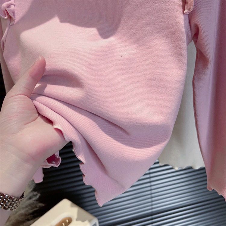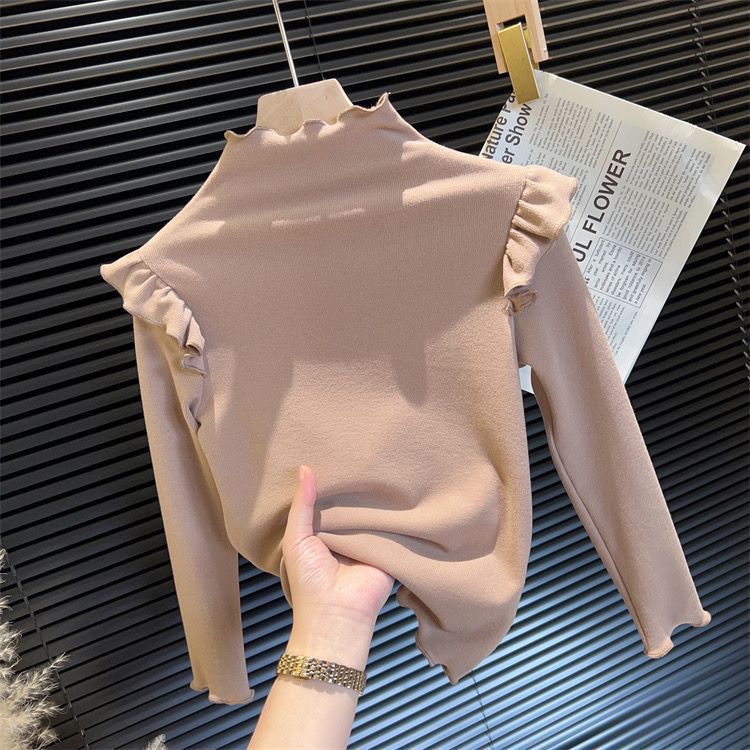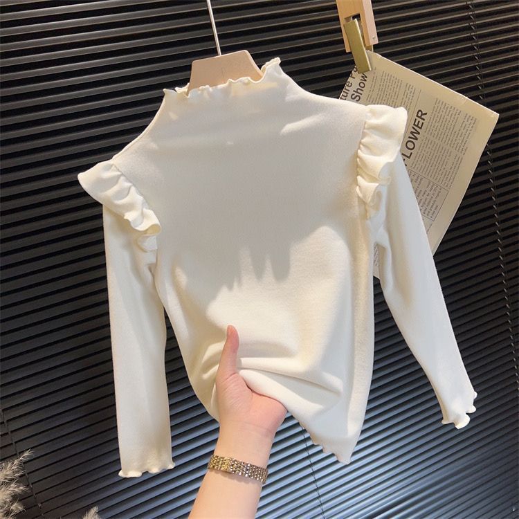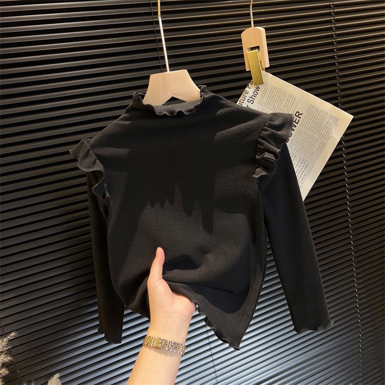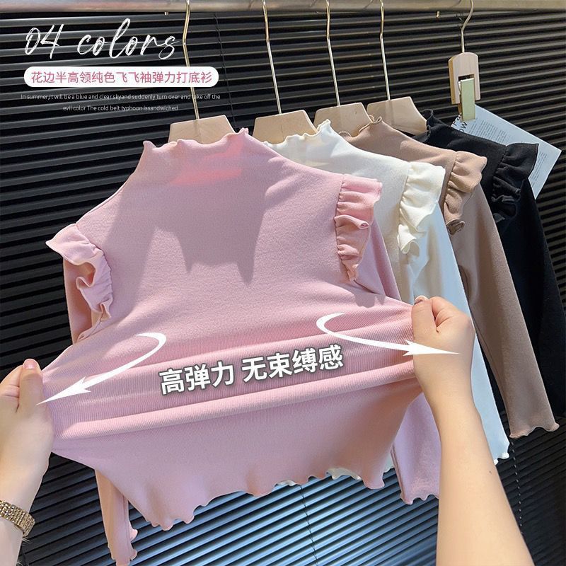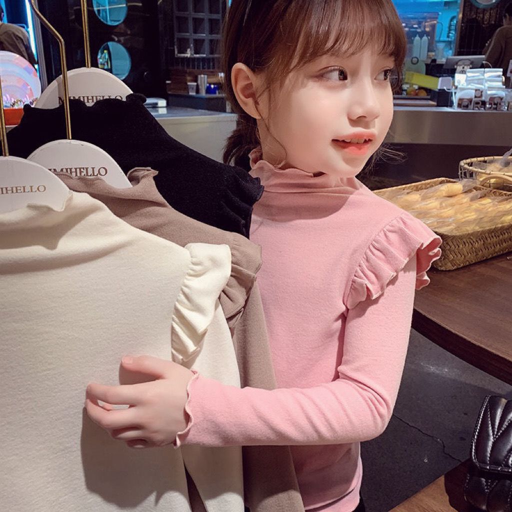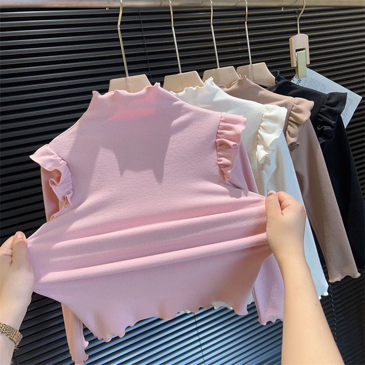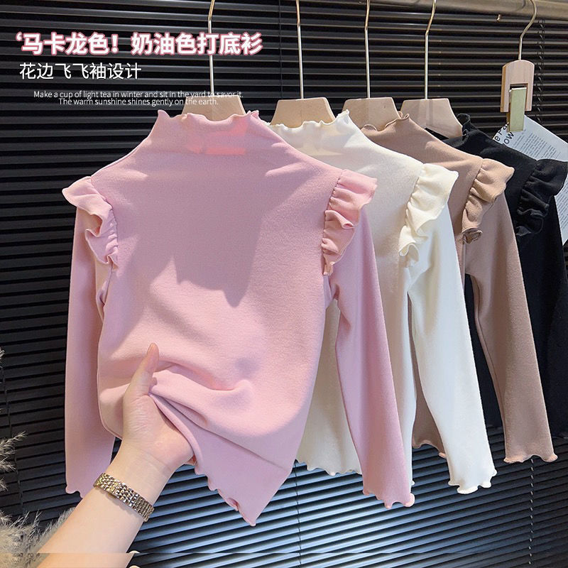 여자 벨벳베이스 셔츠 가을과 겨울 새로운 작은 비행 소매 서양식 어린이 한국 긴 소매 티셔츠 소녀 내부 탑