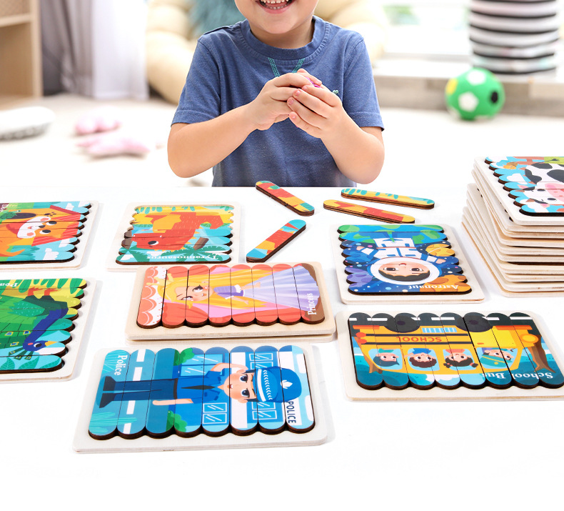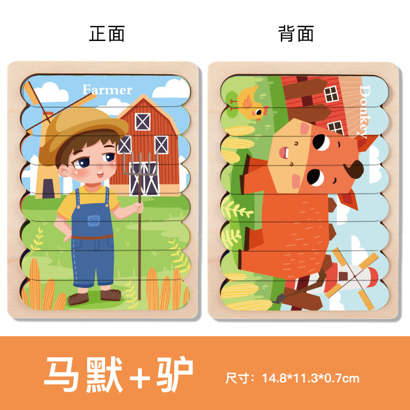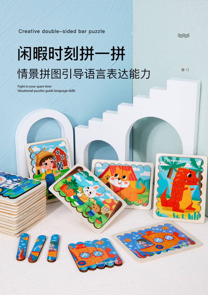 국경 나무 바 퍼즐 어린이 조기 교육 퍼즐 아이스크림 스틱 양면 만화 동물 퍼즐 장난감스토어 가기