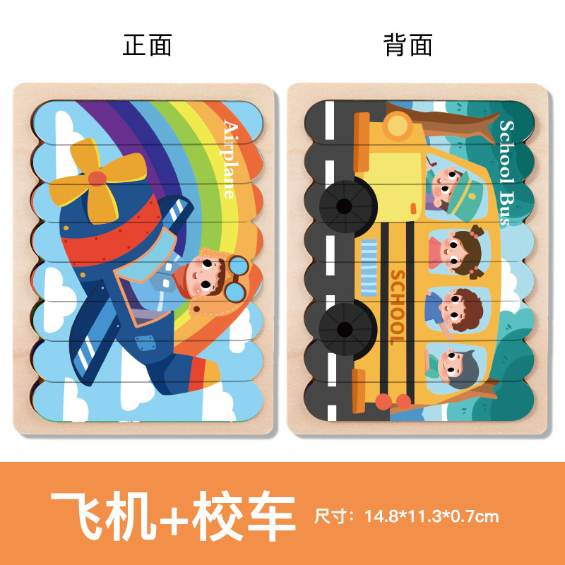 국경 나무 바 퍼즐 어린이 조기 교육 퍼즐 아이스크림 스틱 양면 만화 동물 퍼즐 장난감