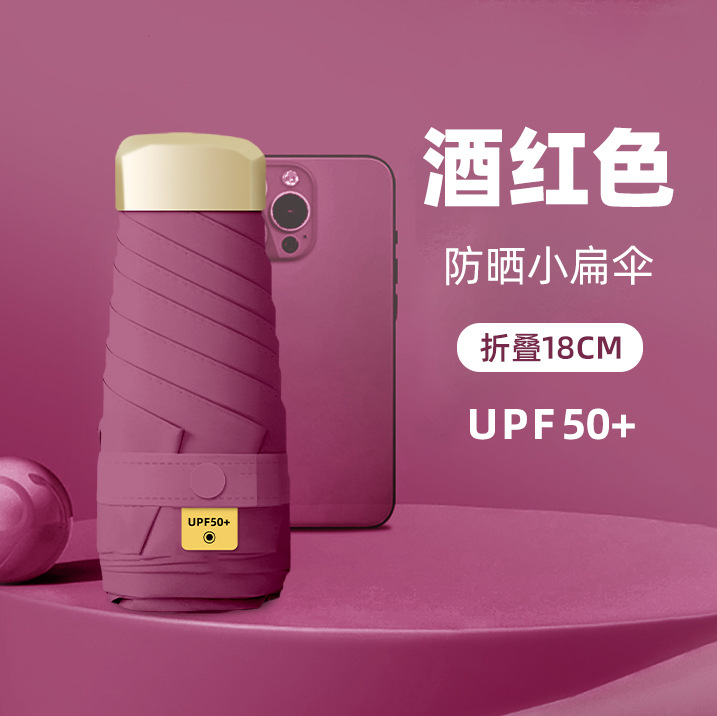 50% 접은 캡슐 우산 선 스크린 우산 태양 우산 미니 맑고 비 이중 사용 양산 우산 여성 휴대용 수동 로고 도매