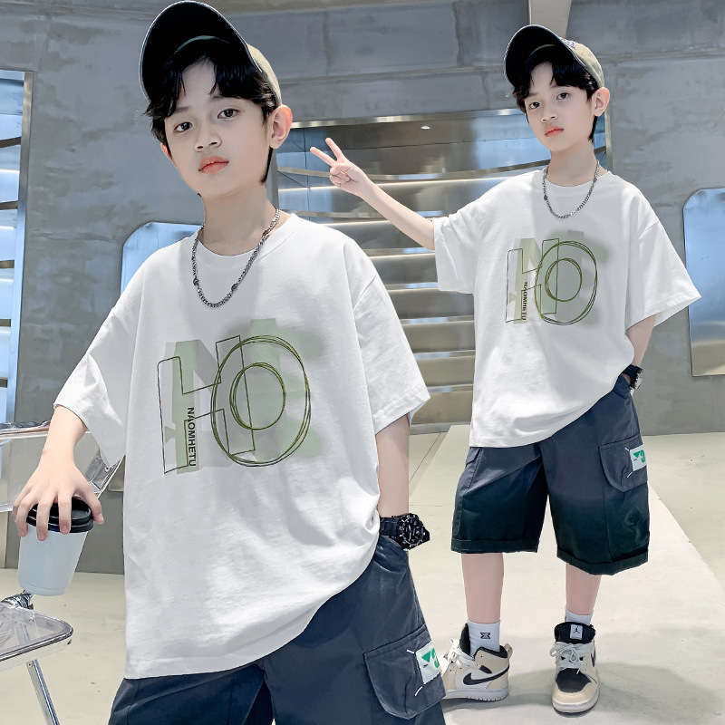 아동복 소년 여름 반팔 티셔츠 2025 새로운 스타일 빅 키즈 여름 소년 프라이드 스트리트 퓨어 코튼 탑 트렌디 브랜드 T스토어 가기