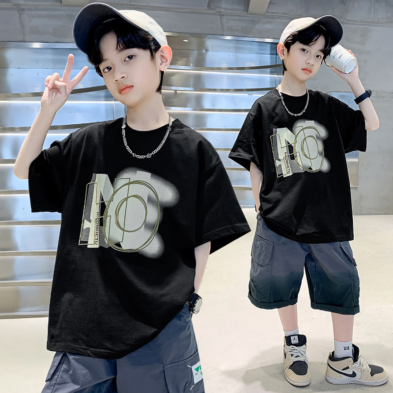 아동복 소년 여름 반팔 티셔츠 2025 새로운 스타일 빅 키즈 여름 소년 프라이드 스트리트 퓨어 코튼 탑 트렌디 브랜드 T