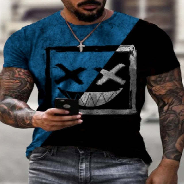 남성 3D 디지털 인쇄 캐주얼 라운드 넥 짧은 소매 탑 여름 패션 청소년 거리 패션 브랜드 짧은 소매 티셔츠