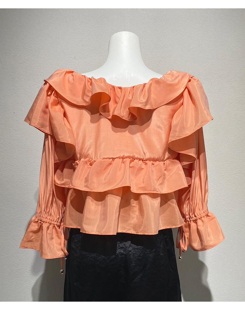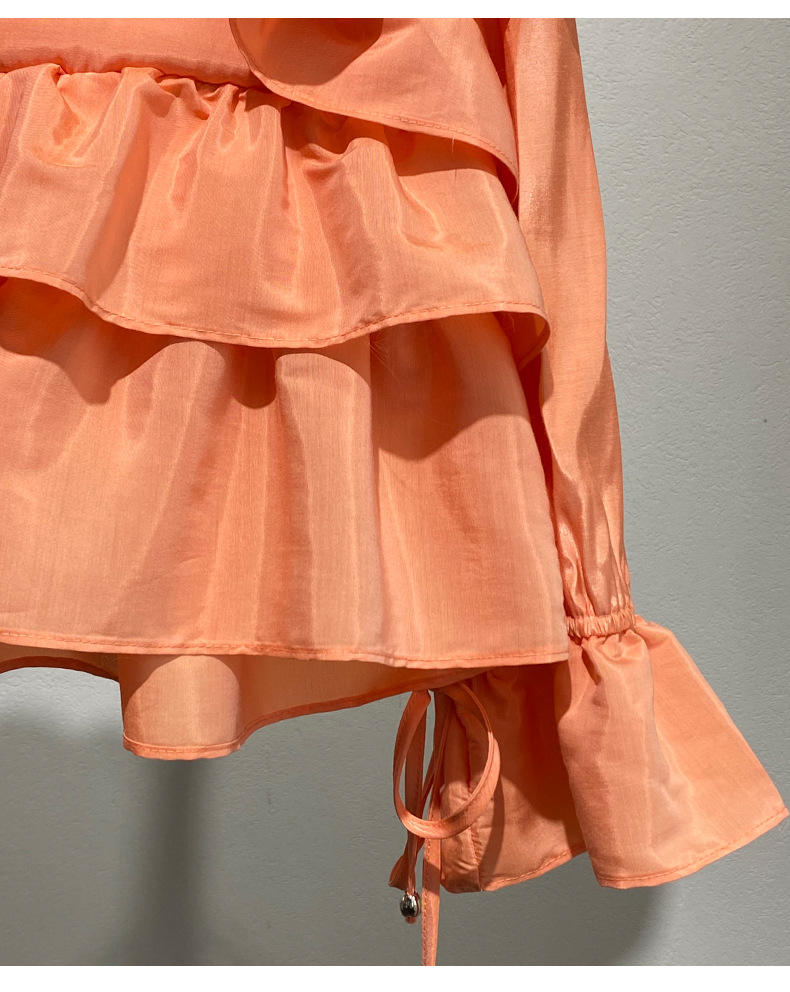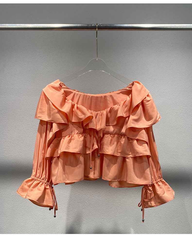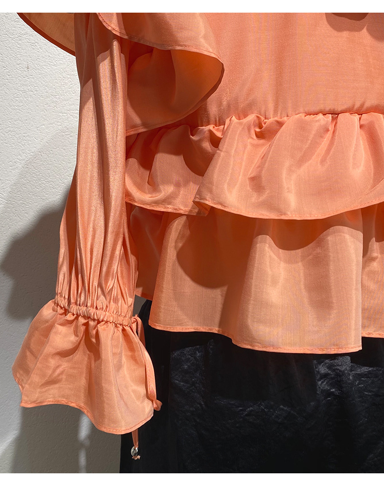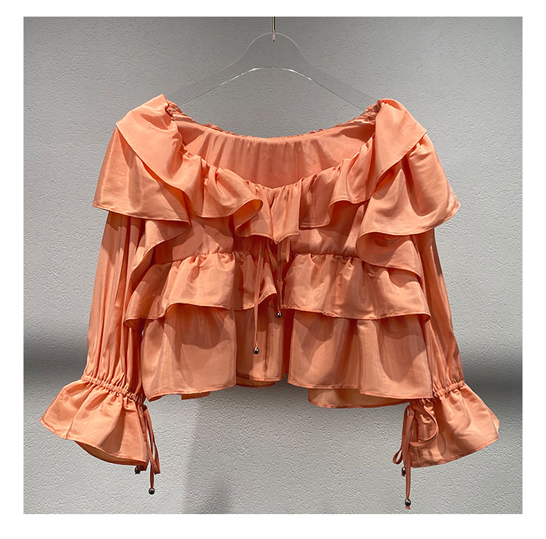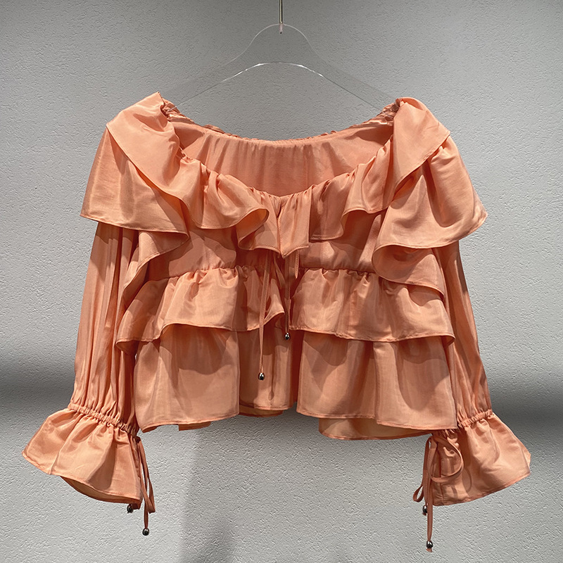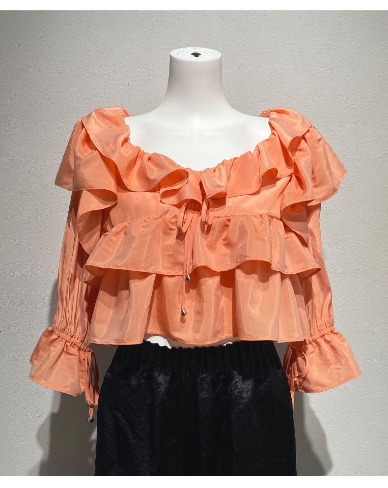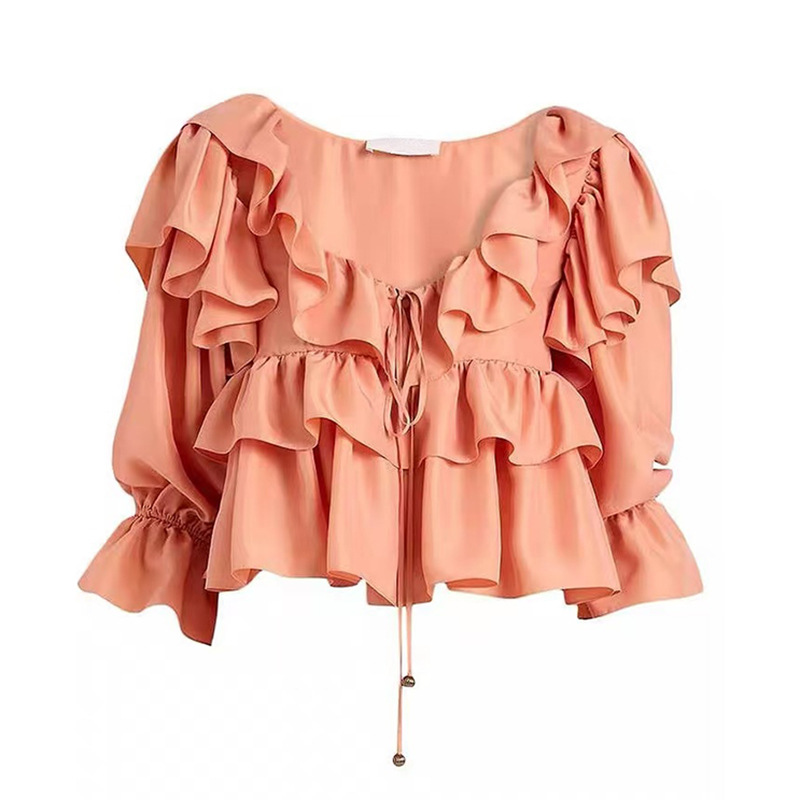 이제 프랑스 틈새 2025 봄과 여름 새로운 러플 딥 V 레이스 업 셔츠 슬리밍 올 매치 쇼트 탑스토어 가기