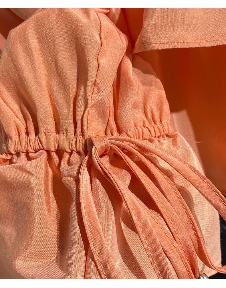 이제 프랑스 틈새 2025 봄과 여름 새로운 러플 딥 V 레이스 업 셔츠 슬리밍 올 매치 쇼트 탑