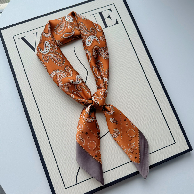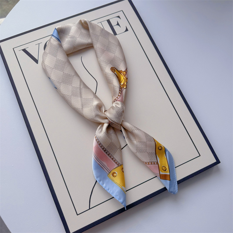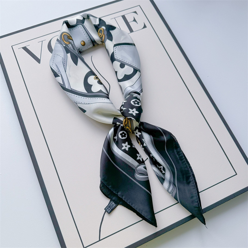 봄 여름 신상 다용도 새틴 레터 프린트 스카프 70×70 실크 스카프 고급 프렌치 스타일 스카프
