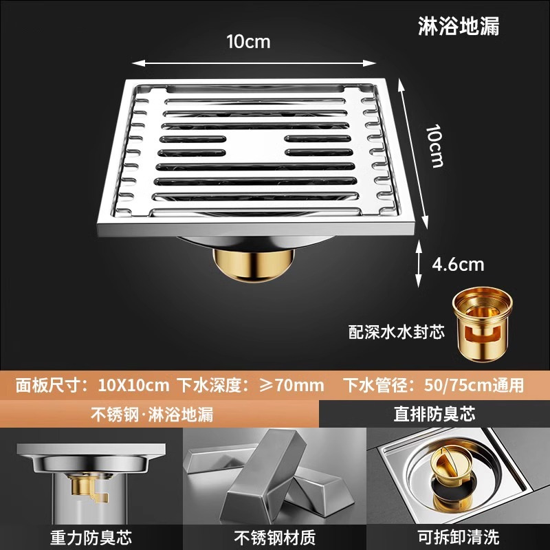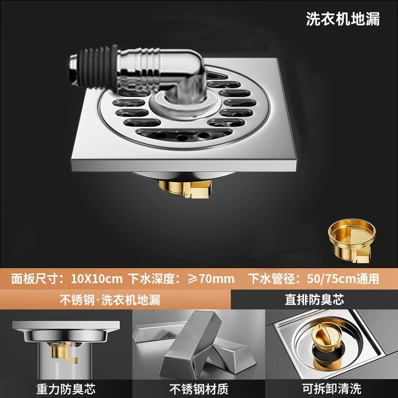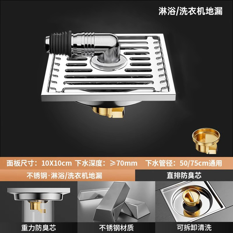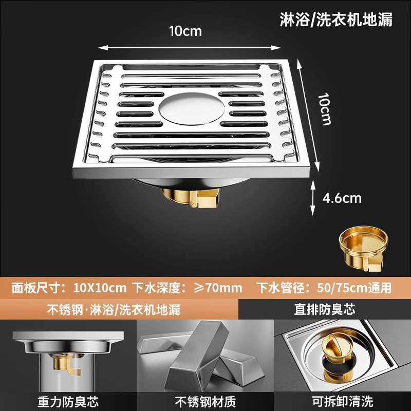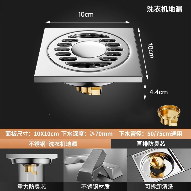 304 스테인레스 스틸 사각 바닥 배수 모든 구리 탈취제 화장실 긴 바 대형 변위 세탁기 하수구