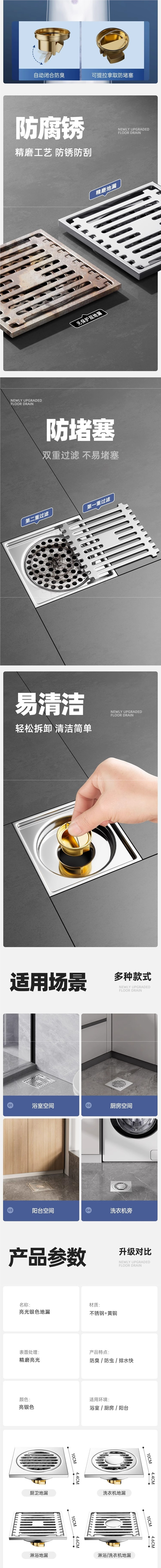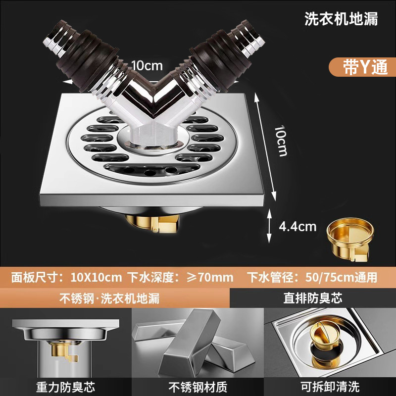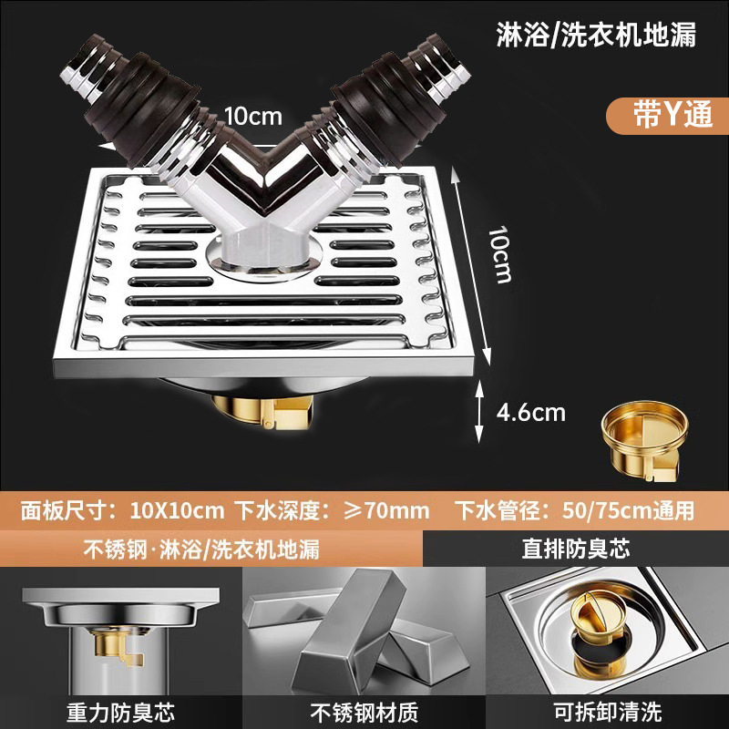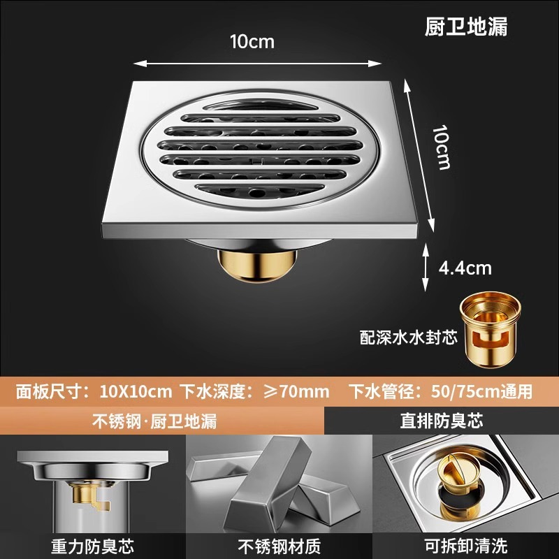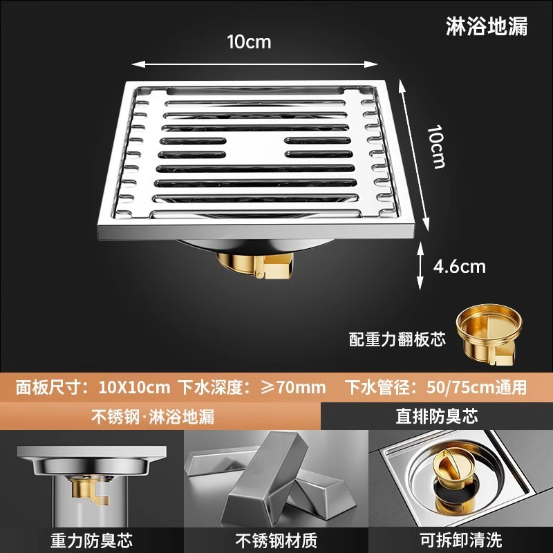 304 스테인레스 스틸 사각 바닥 배수 모든 구리 탈취제 화장실 긴 바 대형 변위 세탁기 하수구