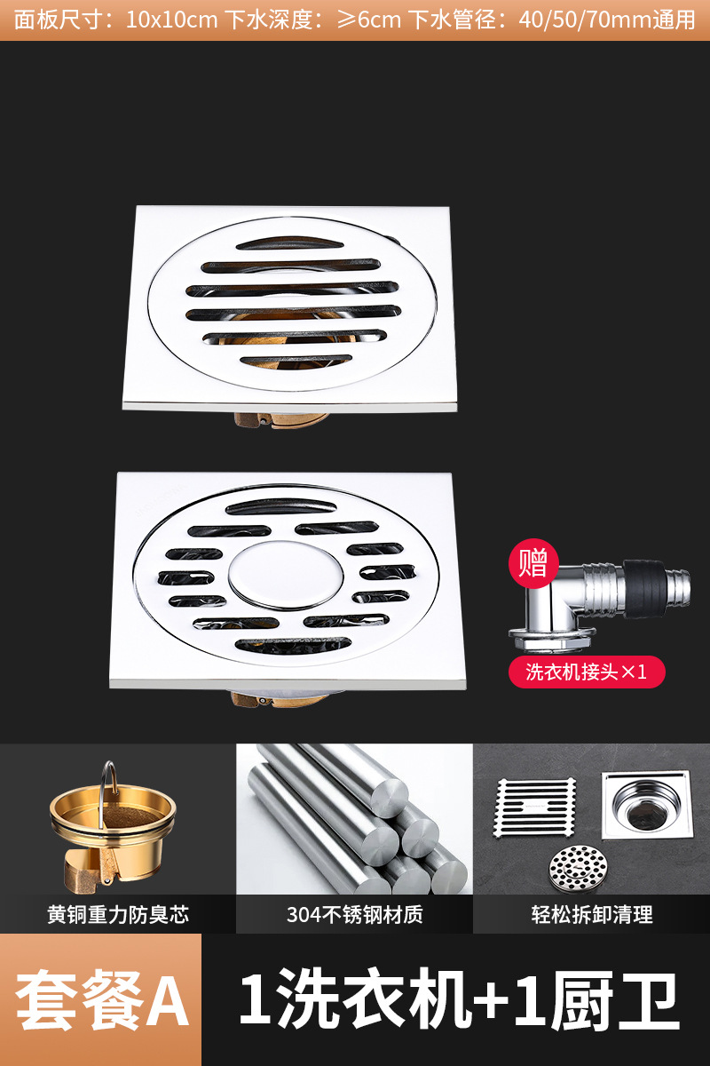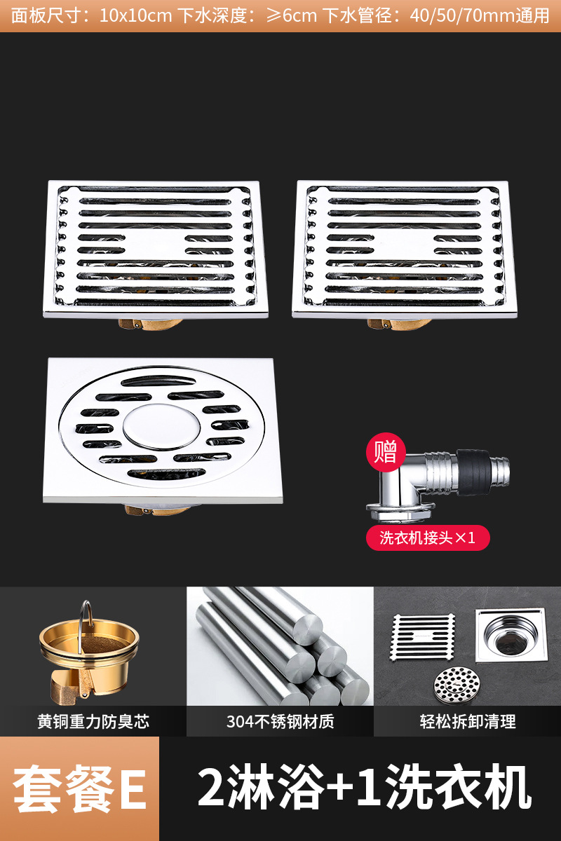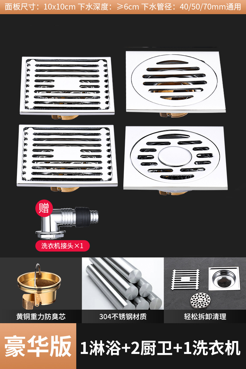 304 스테인레스 스틸 사각 바닥 배수 모든 구리 탈취제 화장실 긴 바 대형 변위 세탁기 하수구스토어 가기