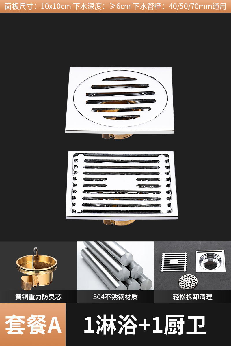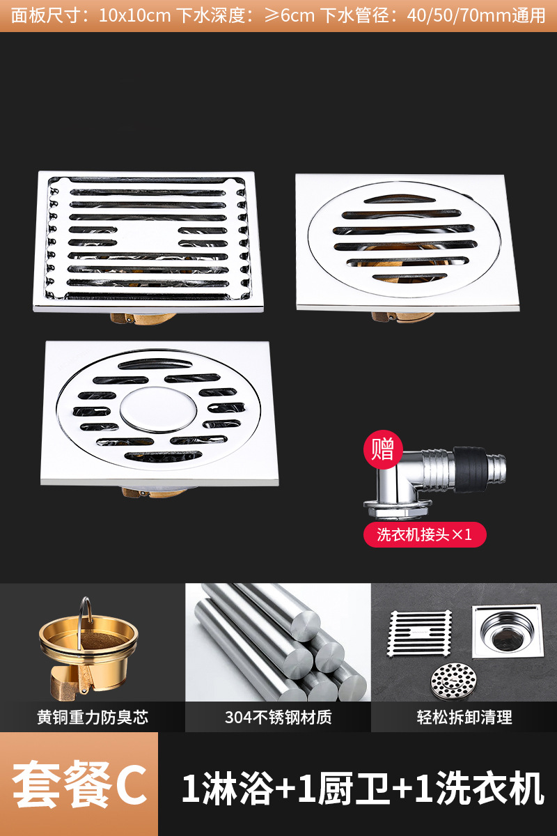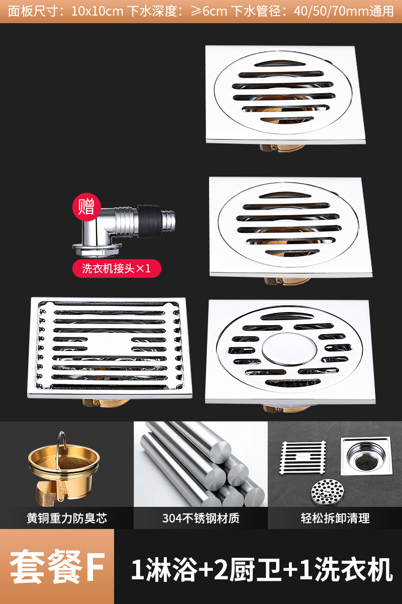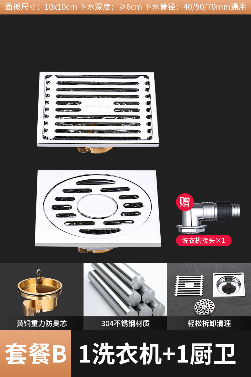 304 스테인레스 스틸 사각 바닥 배수 모든 구리 탈취제 화장실 긴 바 대형 변위 세탁기 하수구스토어 가기