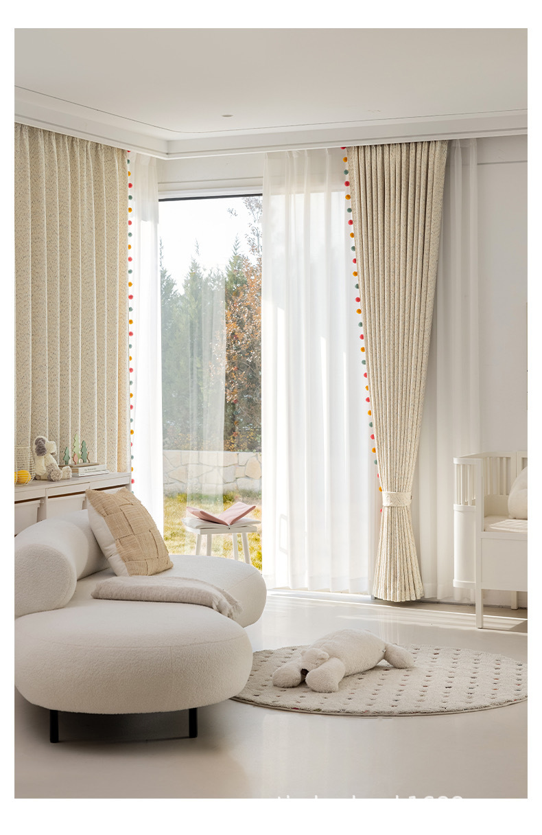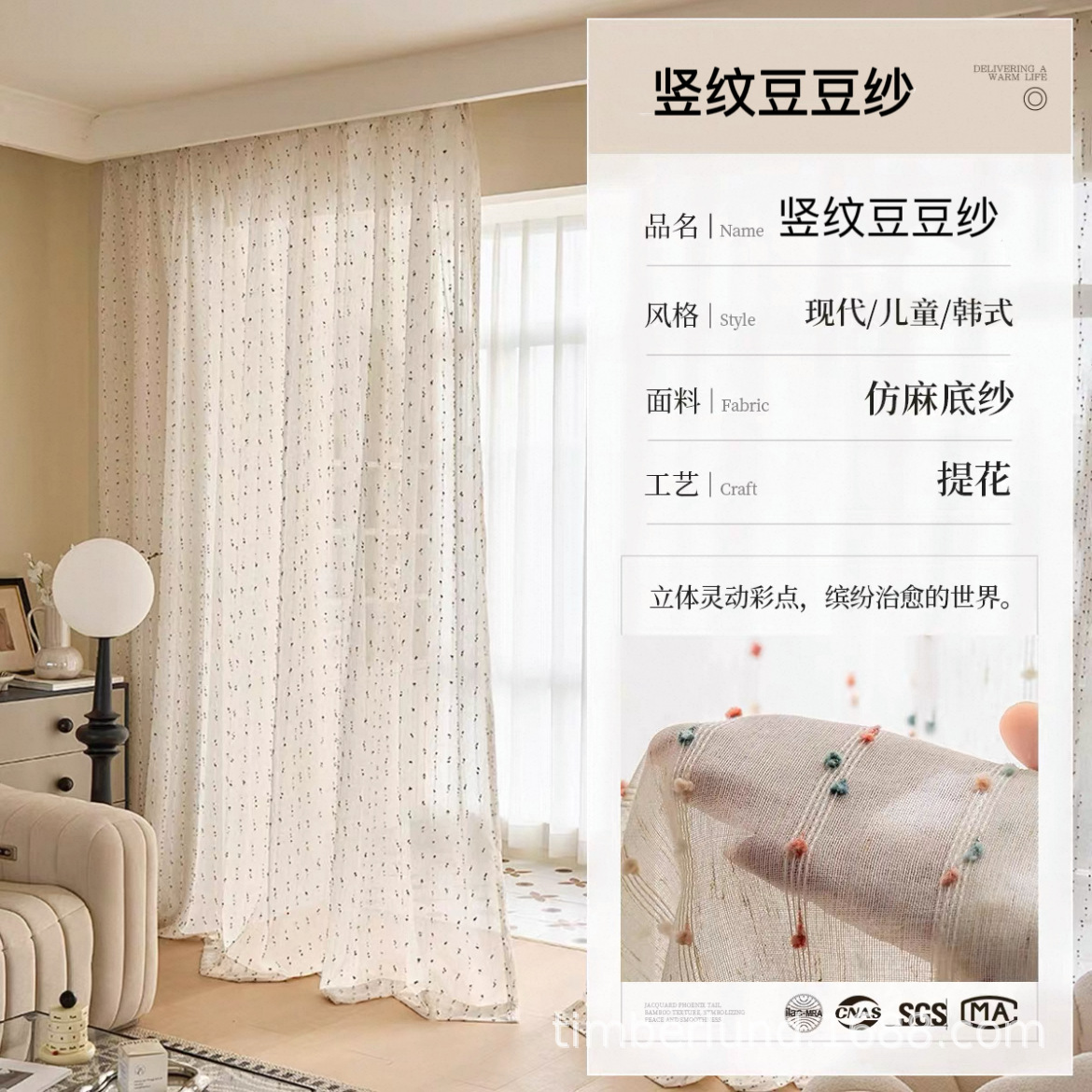 만화경 커튼 귀여운 공주풍 어린이 침실 레인보우 캔디 린넨 거즈 소프트 크림 스타일 도파민