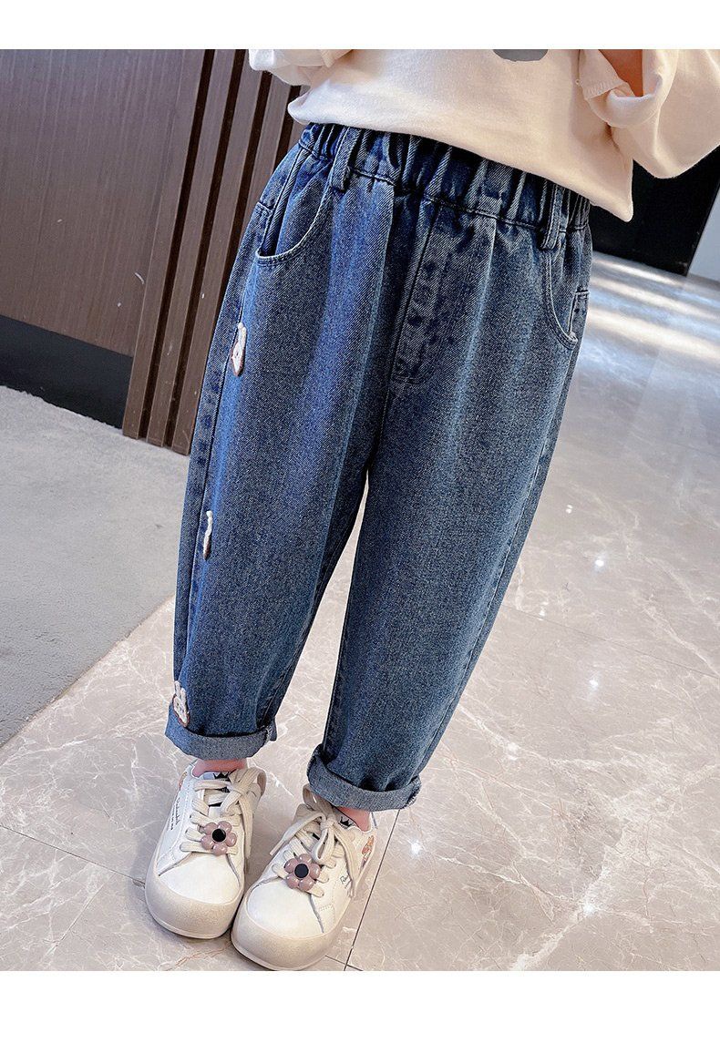 봄과 가을 소녀 청바지 아기의 서양식 어린이 맞춤형 유행 브랜드 한국 스타일 만화 토끼 느슨한 유행 하렘 바지