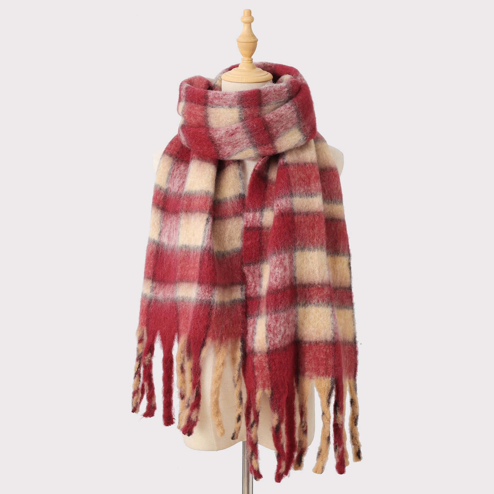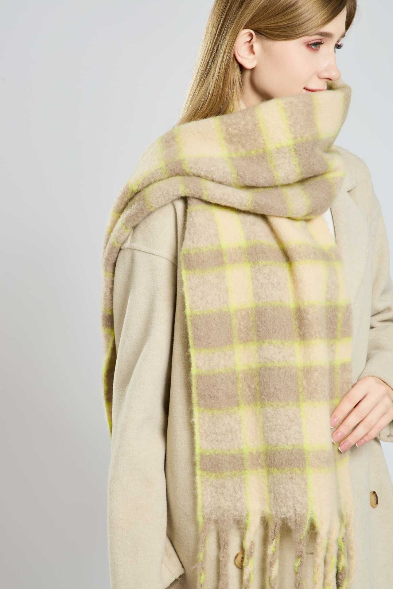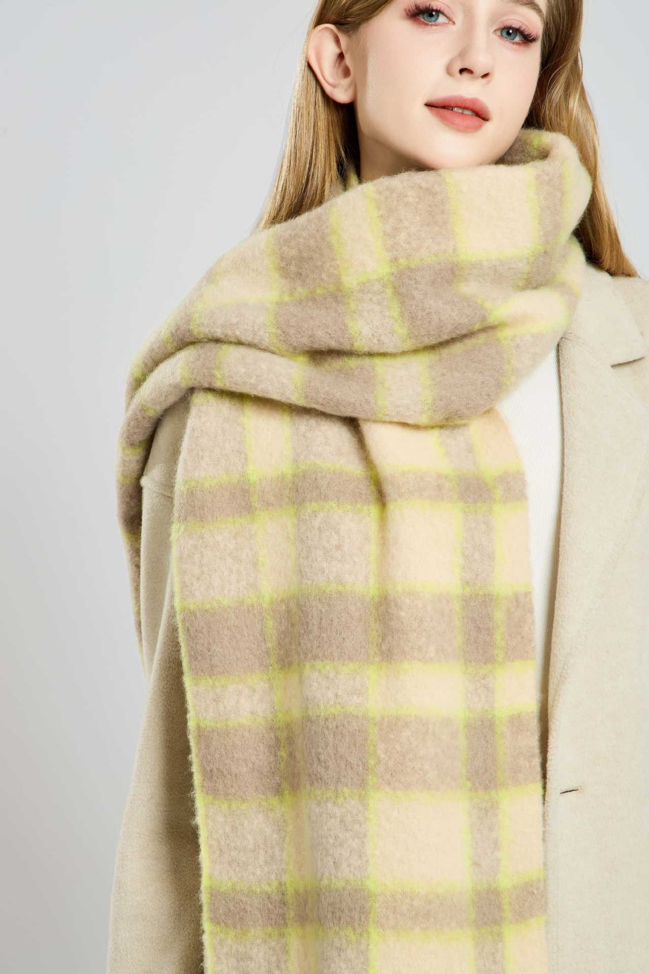 제조업체 대외 무역 울 혼합 간단한 사각형 격자 무늬 스카프 여성 가을, 겨울 부드럽고 따뜻한 목도리 스카프 Maillard스토어 가기