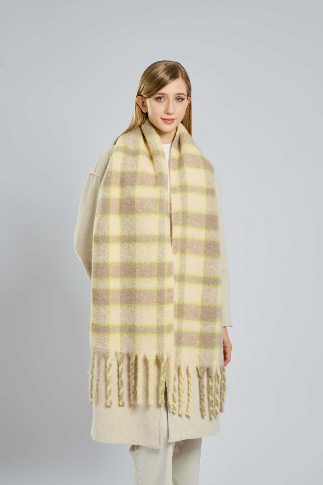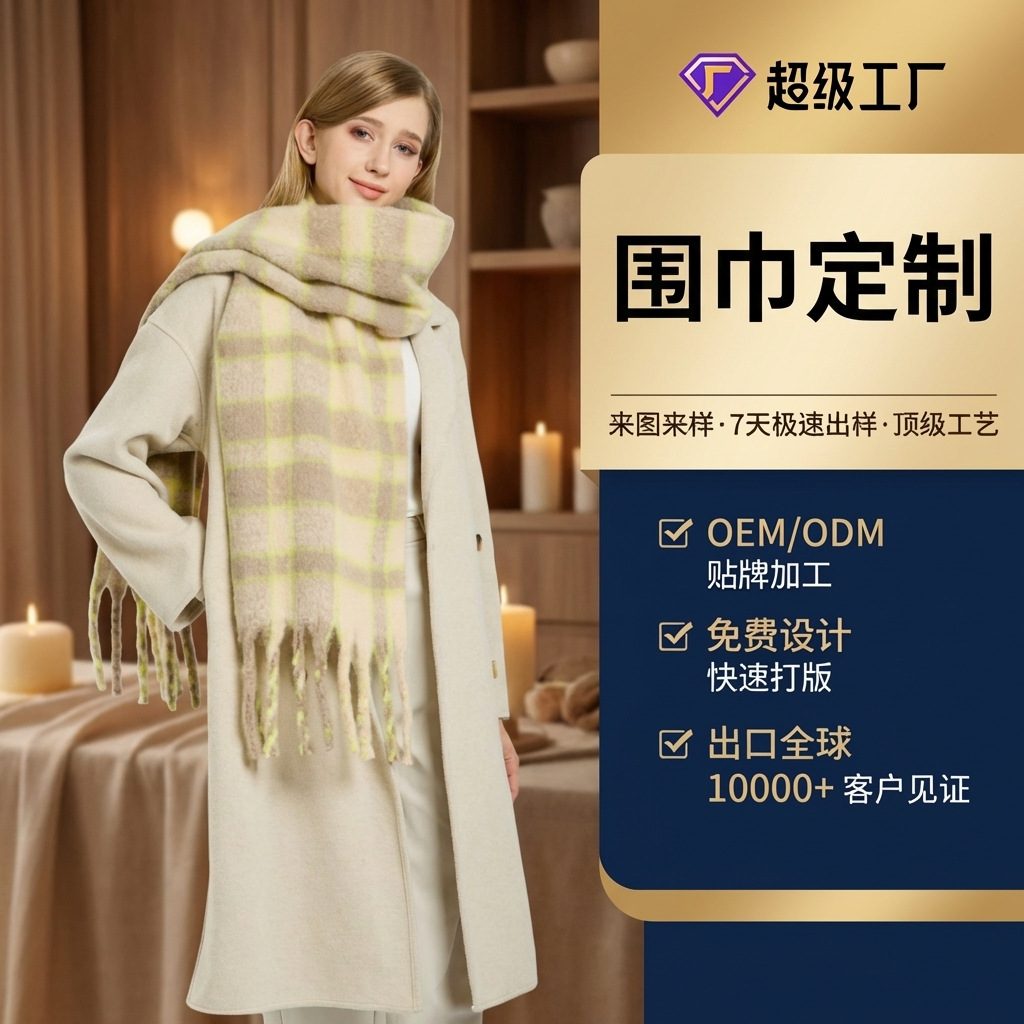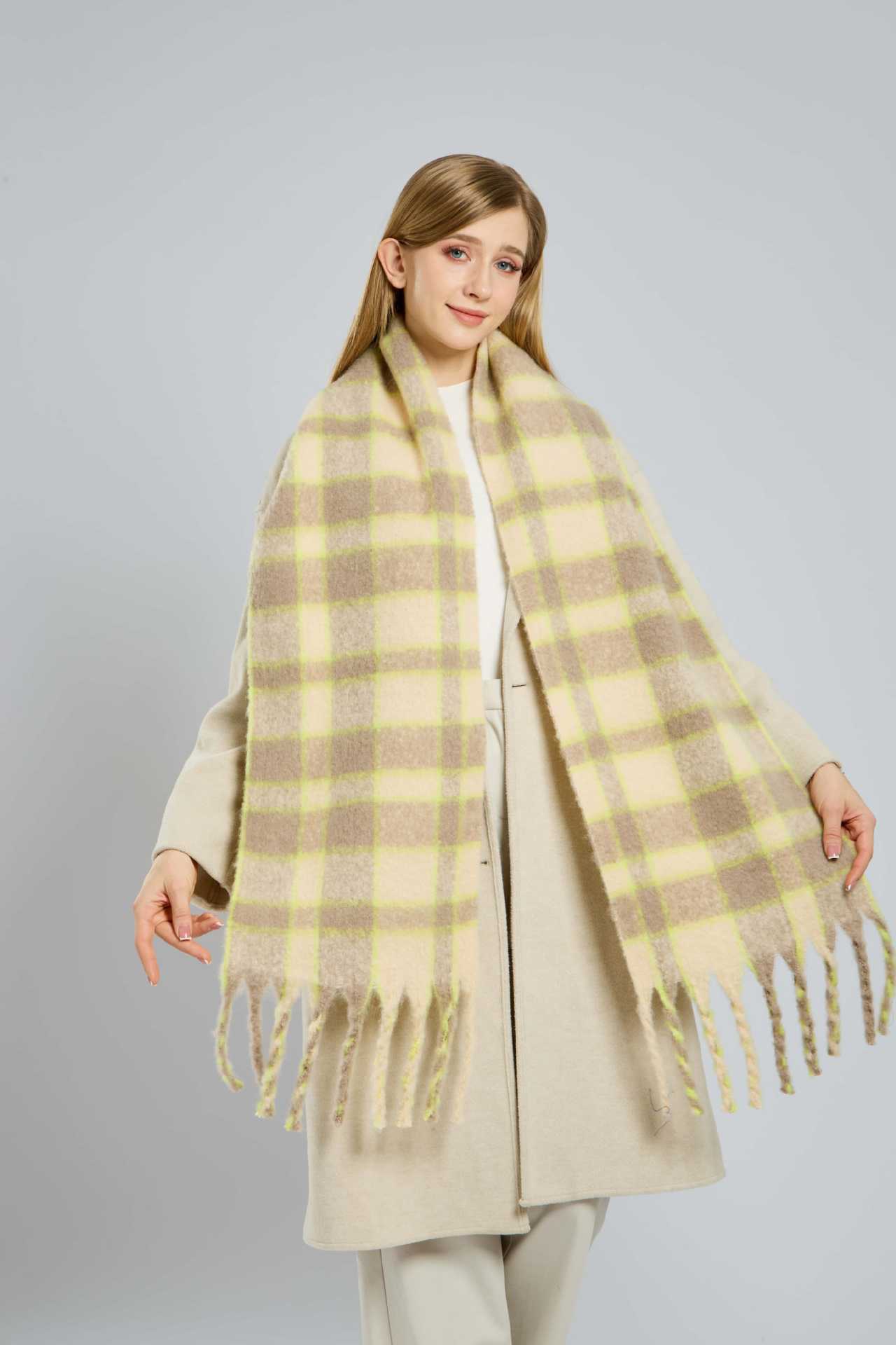 제조업체 대외 무역 울 혼합 간단한 사각형 격자 무늬 스카프 여성 가을, 겨울 부드럽고 따뜻한 목도리 스카프 Maillard스토어 가기