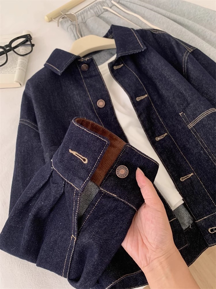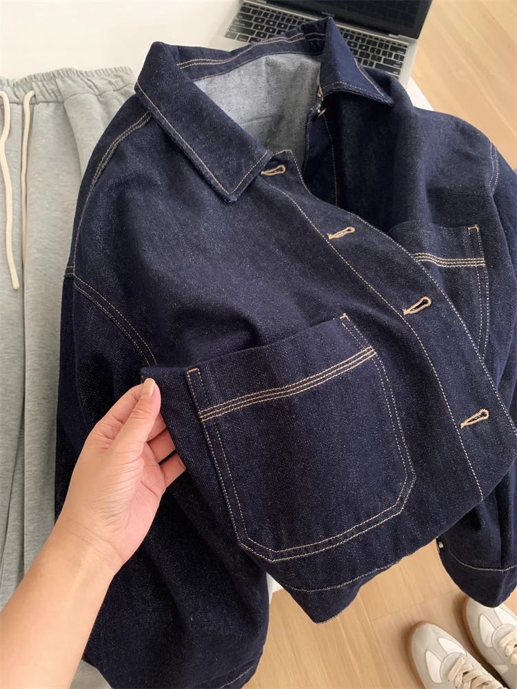 복고풍 다크 블루 작은 데님 코트 여성! 봄과 가을 한국 스타일 올매치 얇은 짧은 옷깃 캐주얼 자켓 탑스토어 가기