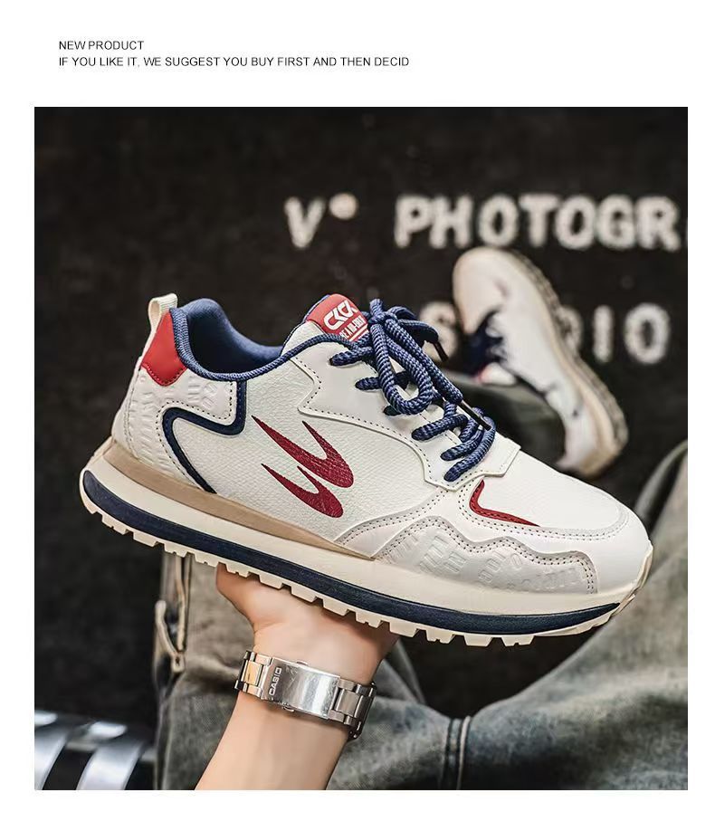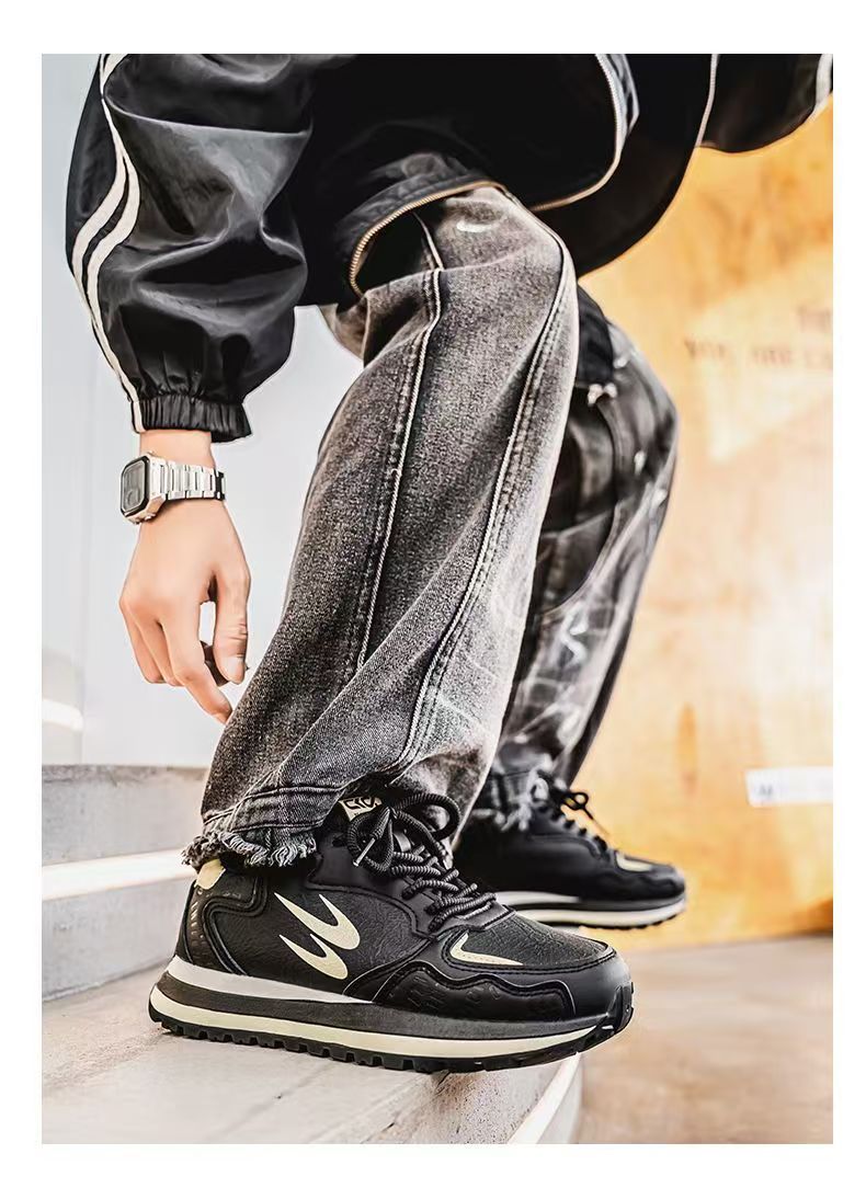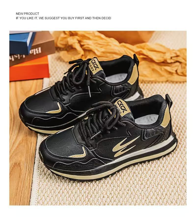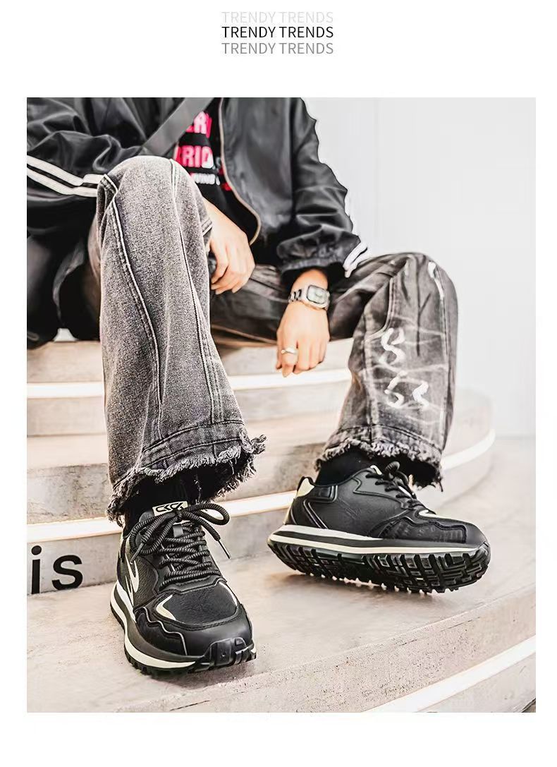 남성 신발 2025 봄 새로운 유행 캐주얼 화이트 운동화 남성 학생 비 슬립 플랫폼 조깅 포레스트 신발스토어 가기