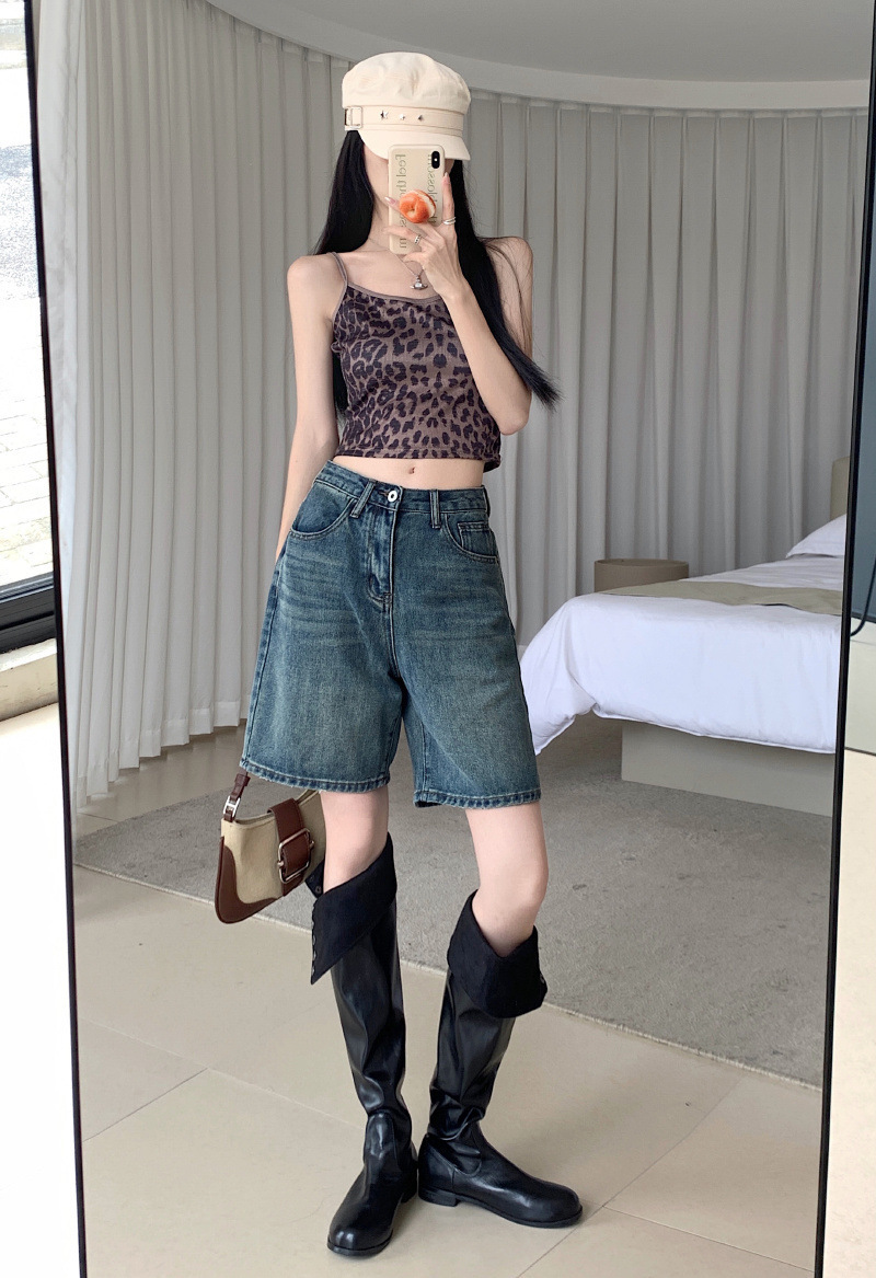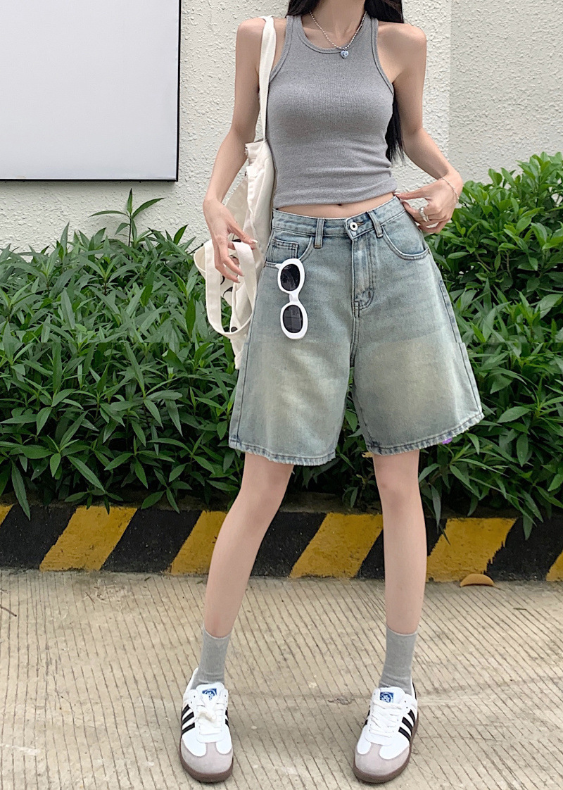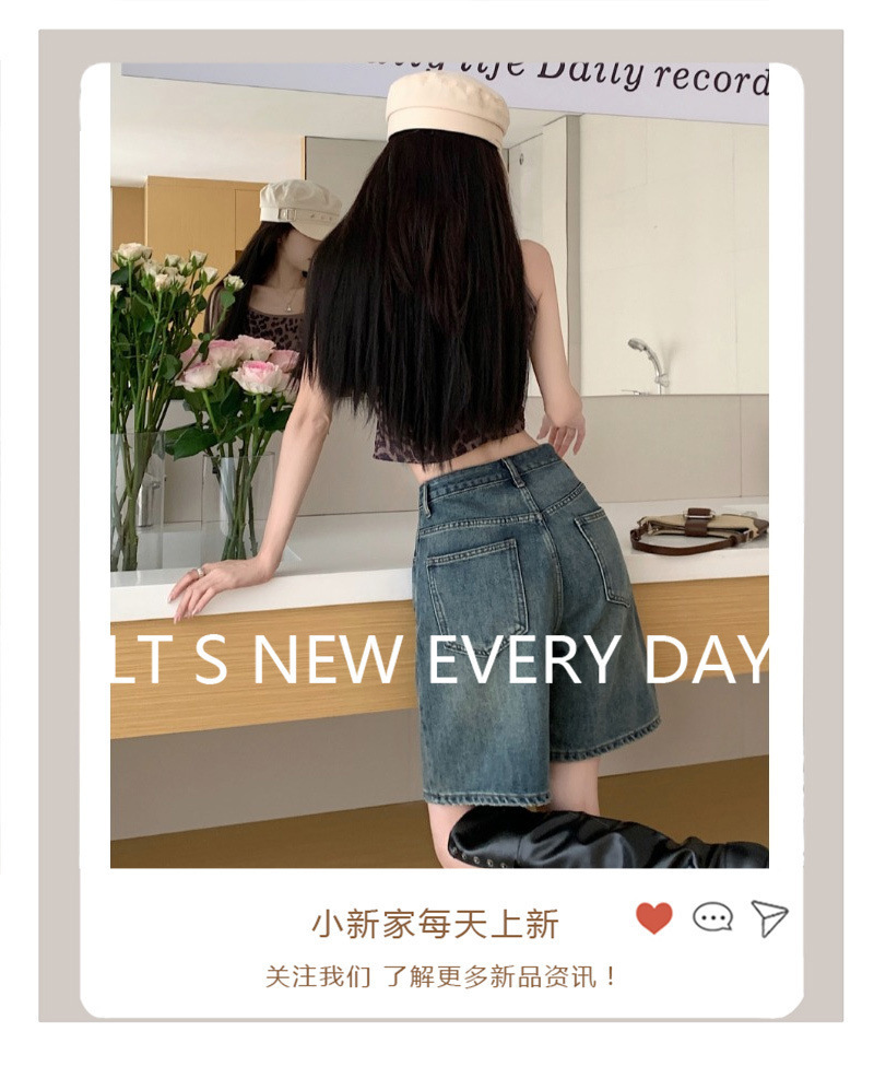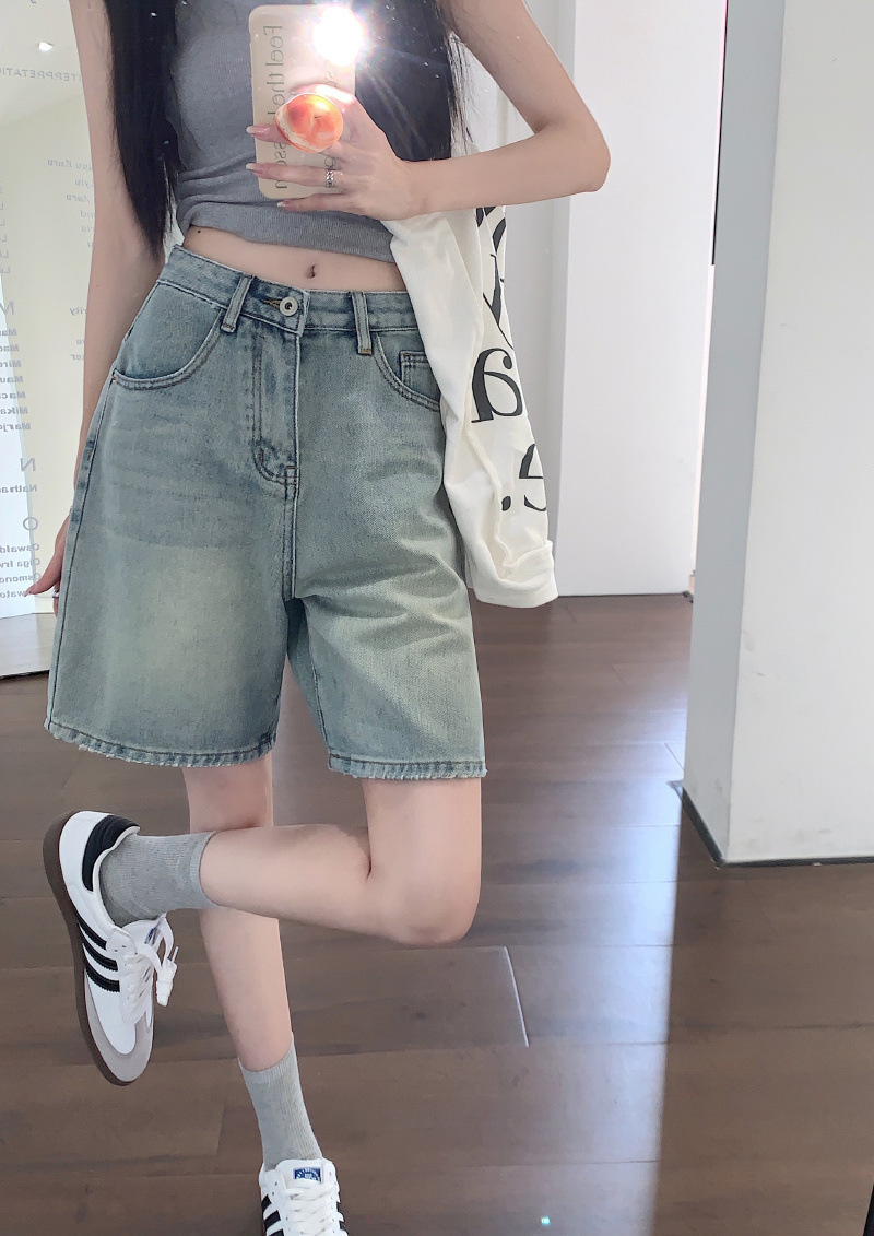 빈티지 세탁 스트레이트 데님 반바지 여성의 높은 허리 슬리밍 느슨한 여름 얇은 플러스 사이즈 통통녀 넓은 다리 바지스토어 가기
