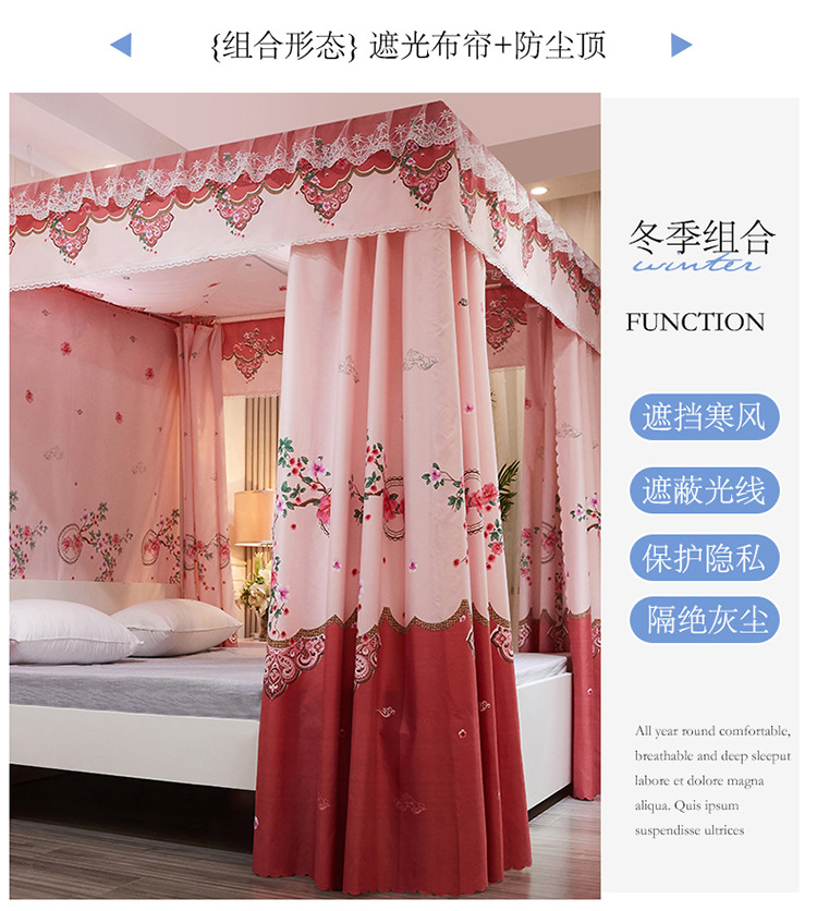 공주 새 바닥 서 방풍 모기장 커튼 가구 음영 및 방진 열린 문 통합 침실 침대 커튼 따뜻한