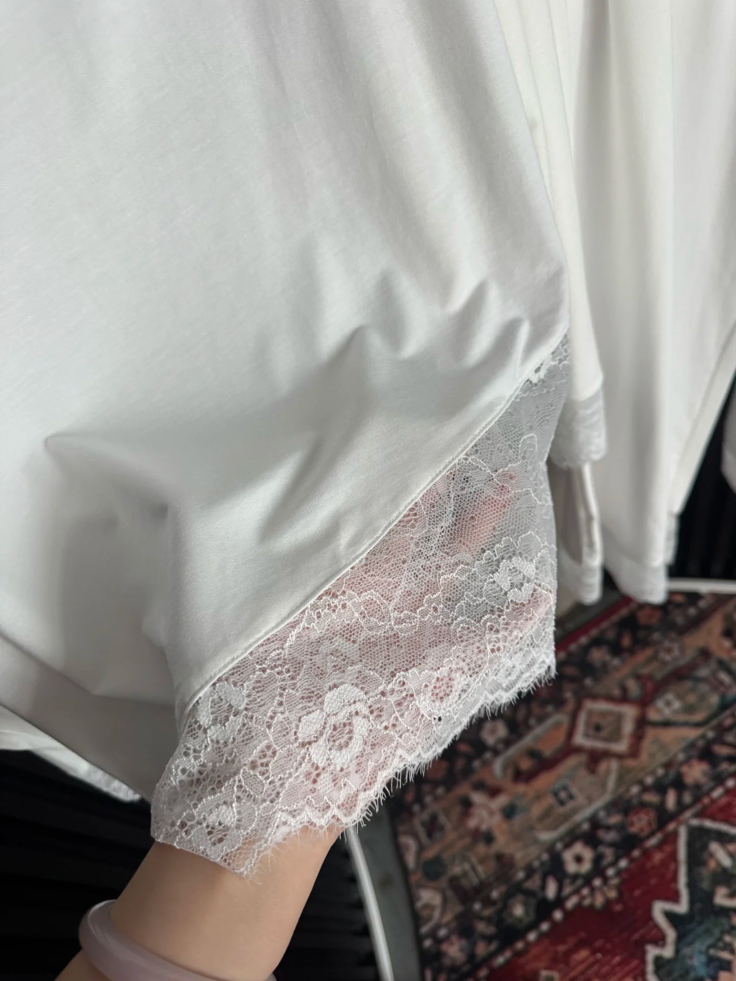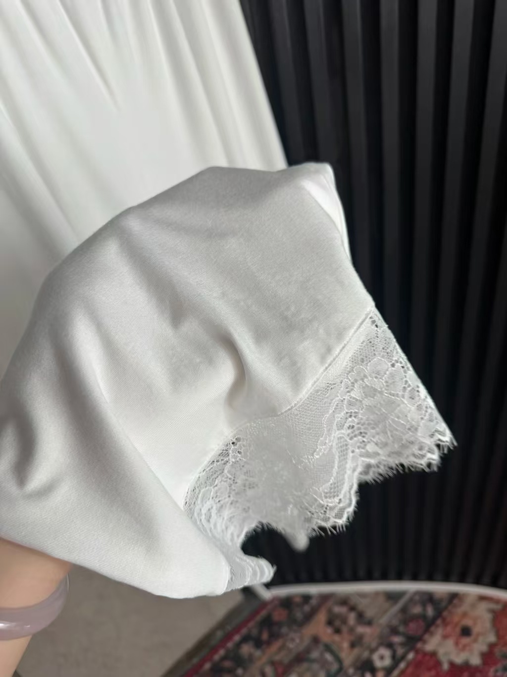 2025 봄 잠옷 새로운 순수 화이트 레이스 면 좋은 원단 긴 소매 세트 홈 옷 여성의 반환 없음