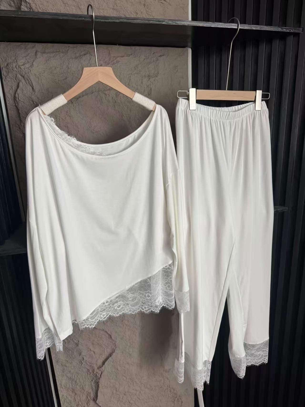 2025 봄 잠옷 새로운 순수 화이트 레이스 면 좋은 원단 긴 소매 세트 홈 옷 여성의 반환 없음스토어 가기
