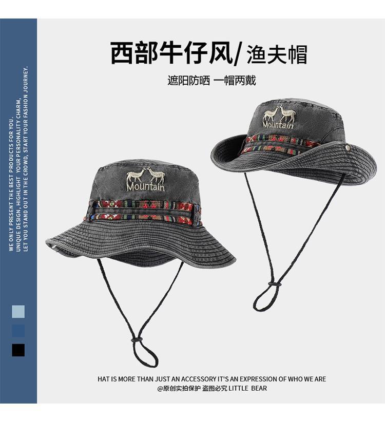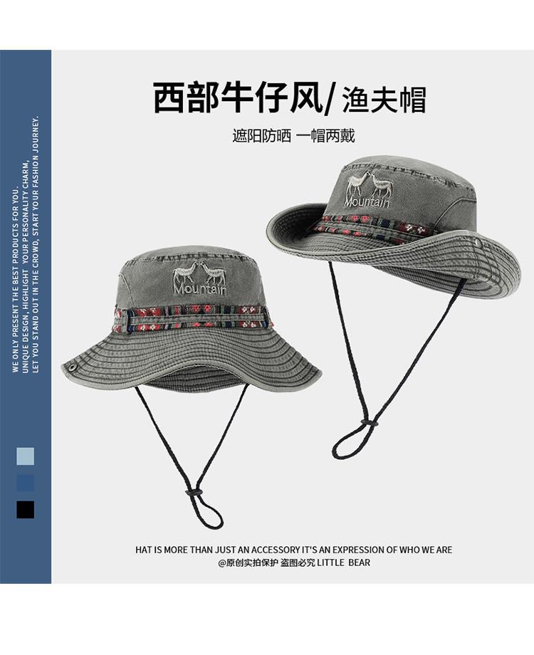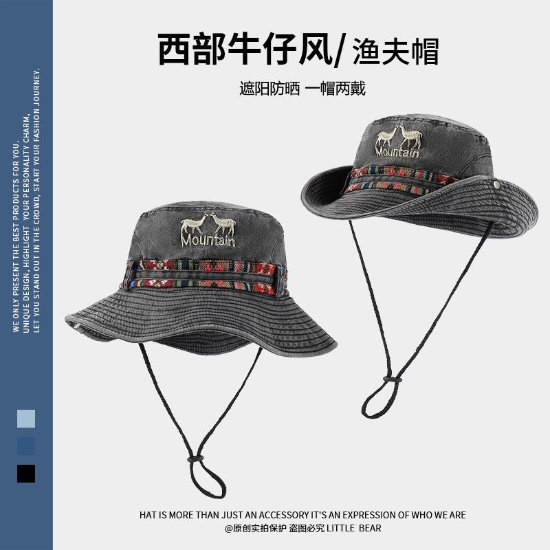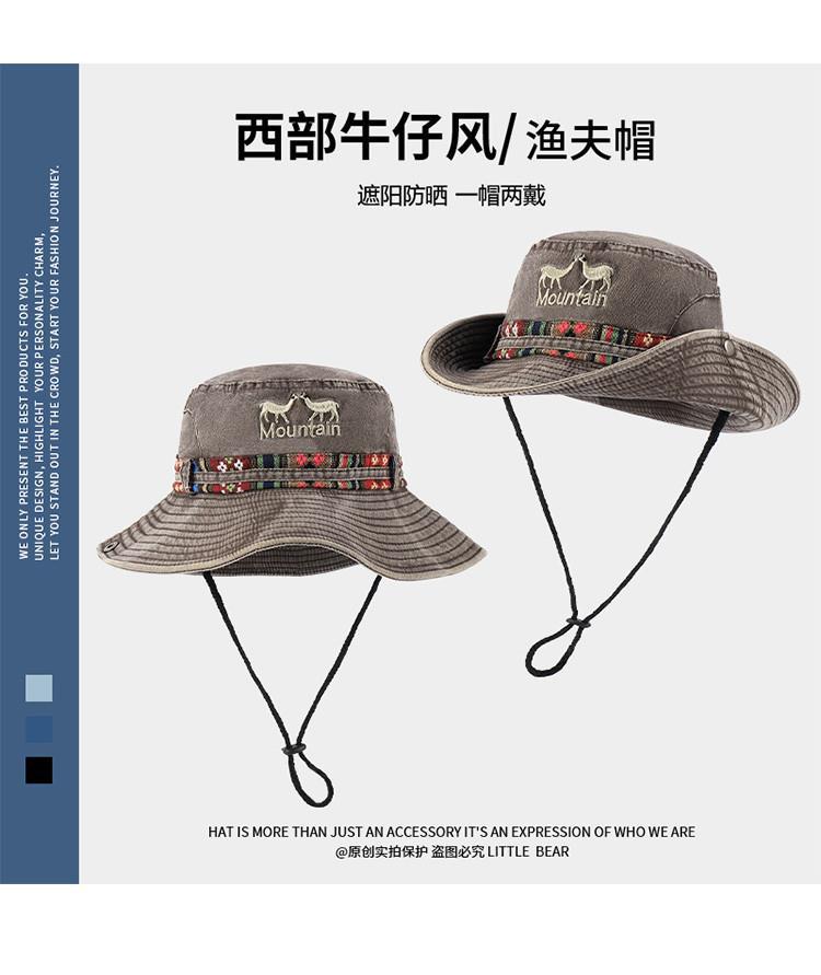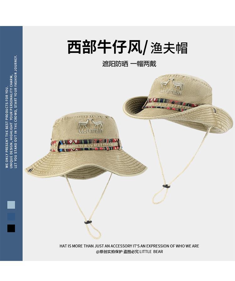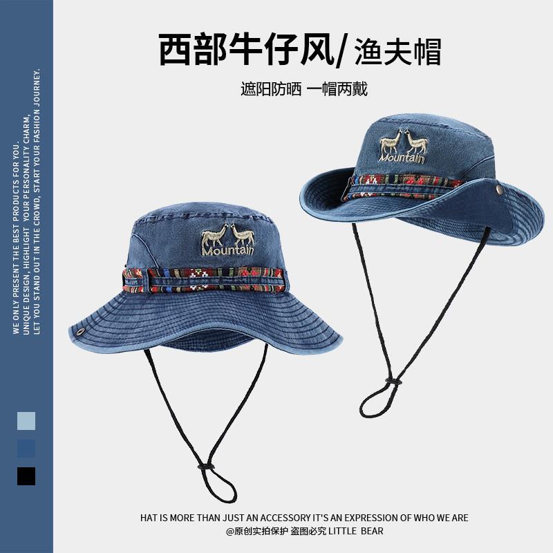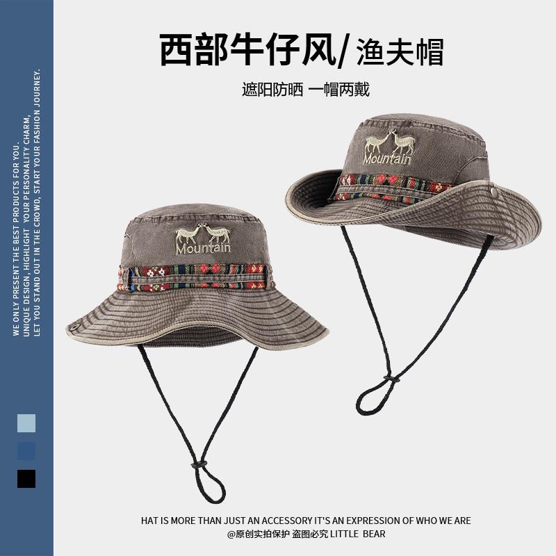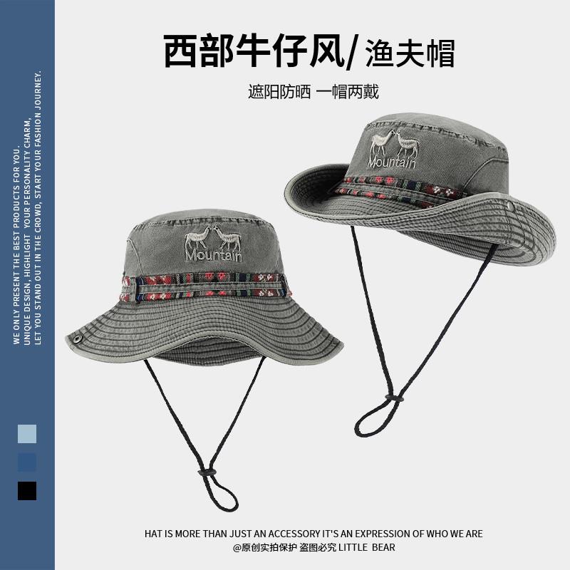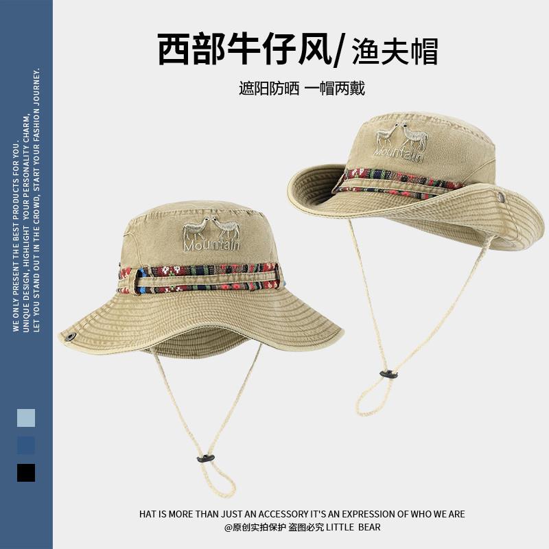 민족 스타일 서양 카우보이 모자 어린이 봄과 여름 큰 머리 야외 하이킹 등산 모자 빅 햇 브림 선크림 모자스토어 가기