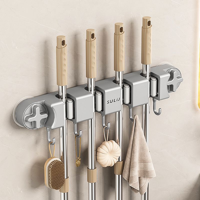 • 건 그레이 [탄소강 + ABS] 흡착컵 걸레 클립 - 카드 5개 및 후크 6개