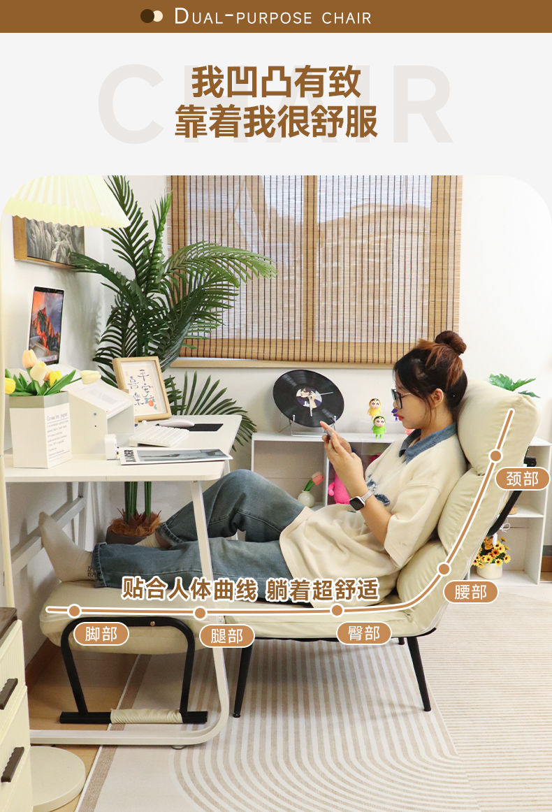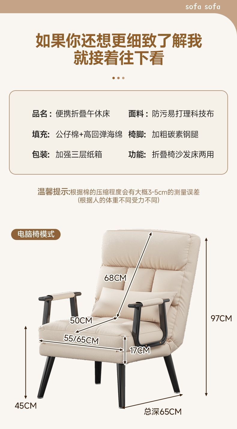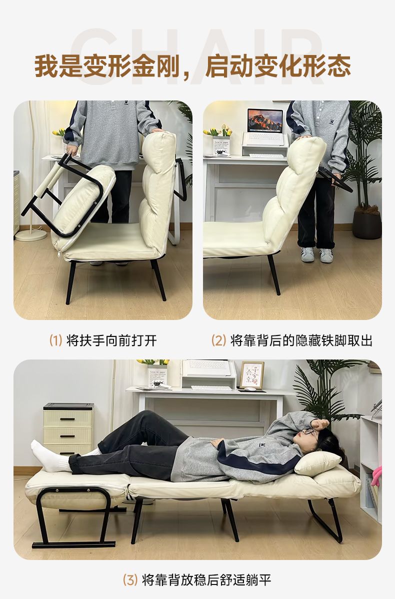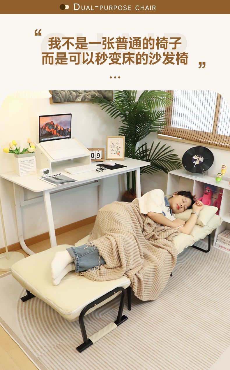 접이식 소파베드, 수면 및 휴식 가능, 사무실 의자 겸용, 낮잠 침대, 가정용, 누워서 앉을 수 있는 접이식 레이지 소파 의자