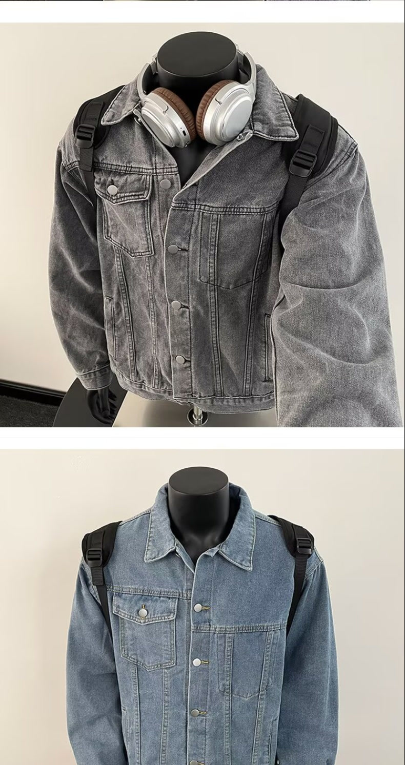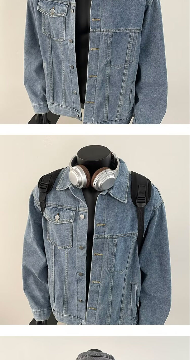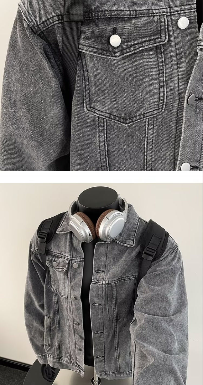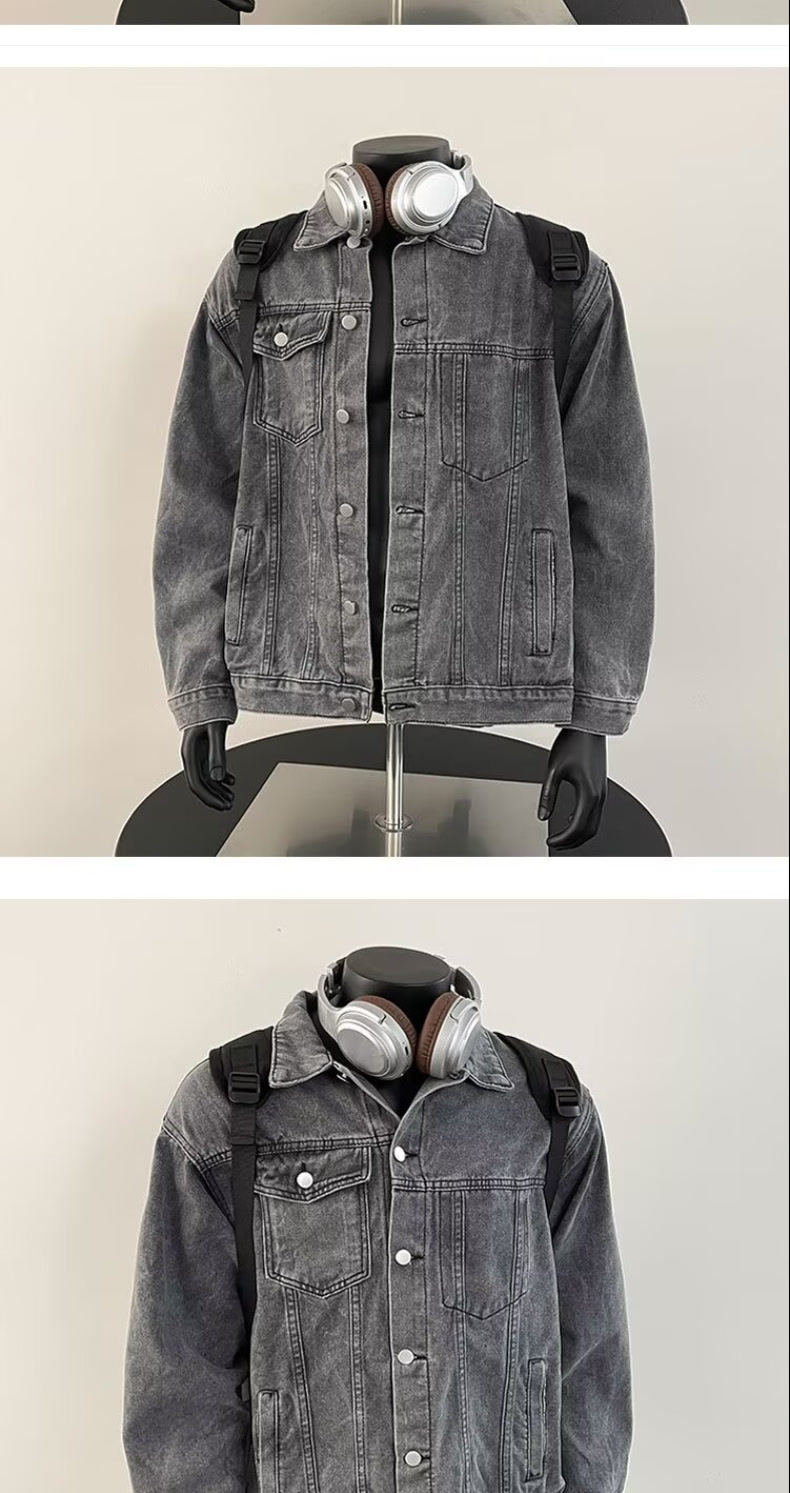 10 대 소년을위한 봄과 가을 데님 코트 아메리칸 스타일 레트로 옷깃 자켓 Ins 느슨한 데님 최고 트렌드스토어 가기
