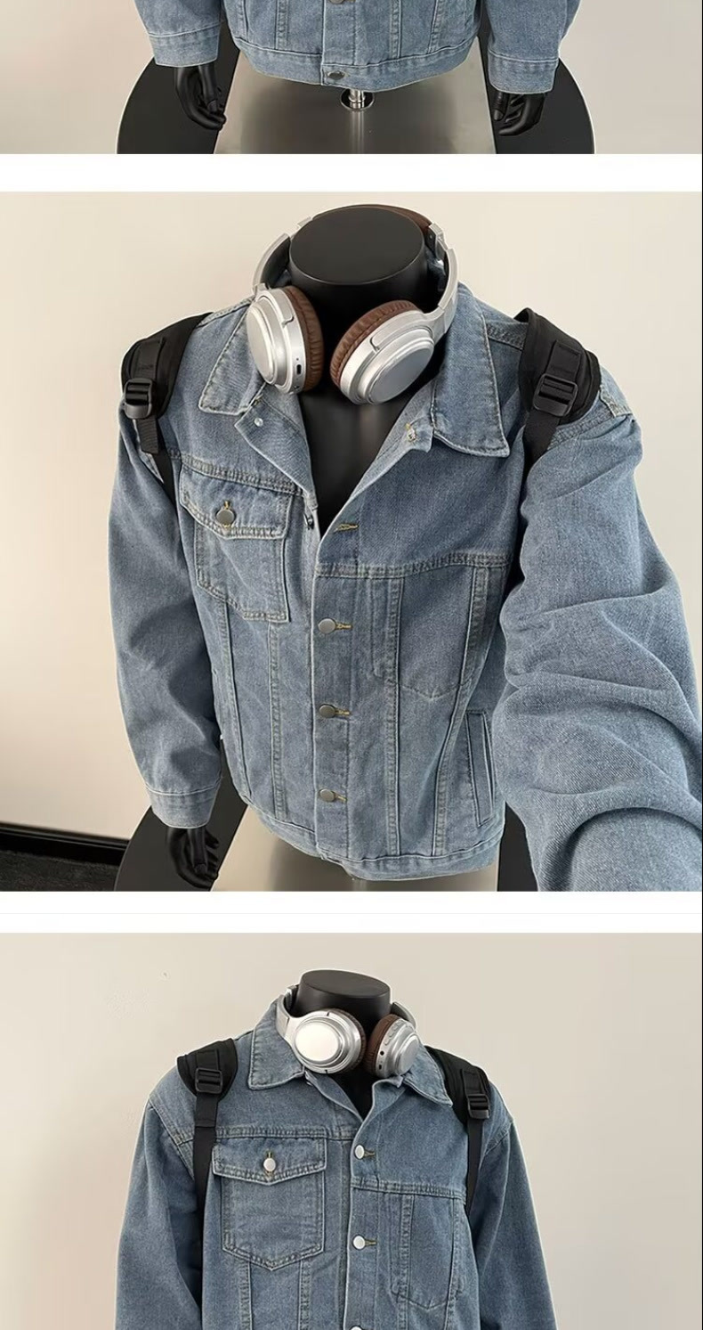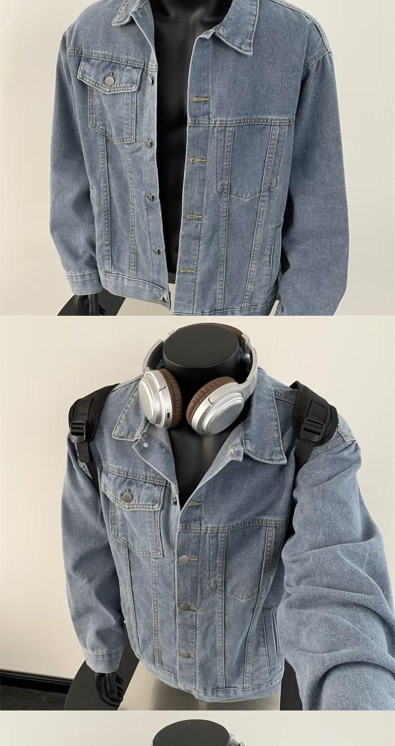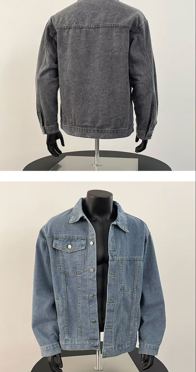 10 대 소년을위한 봄과 가을 데님 코트 아메리칸 스타일 레트로 옷깃 자켓 Ins 느슨한 데님 최고 트렌드스토어 가기