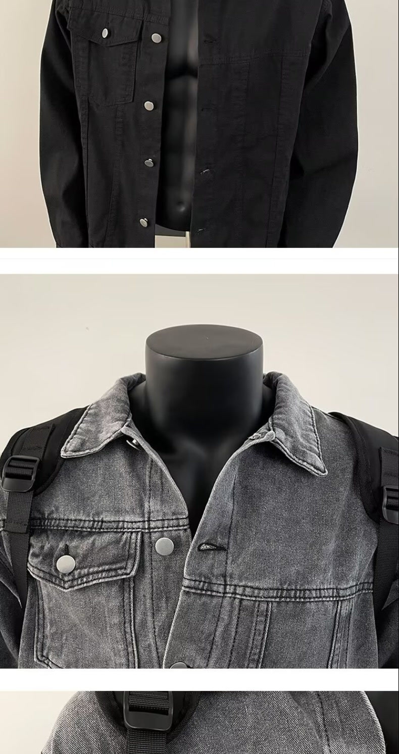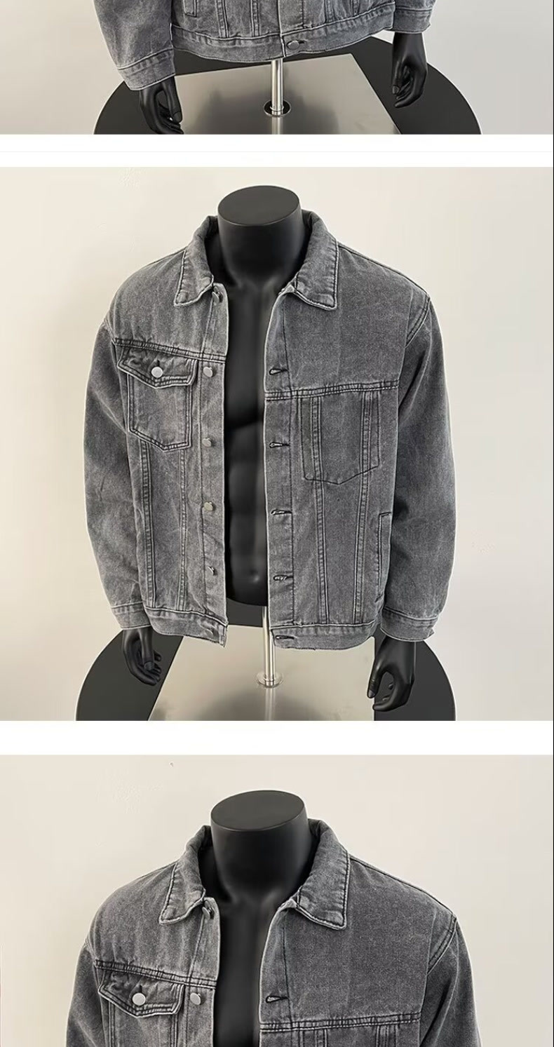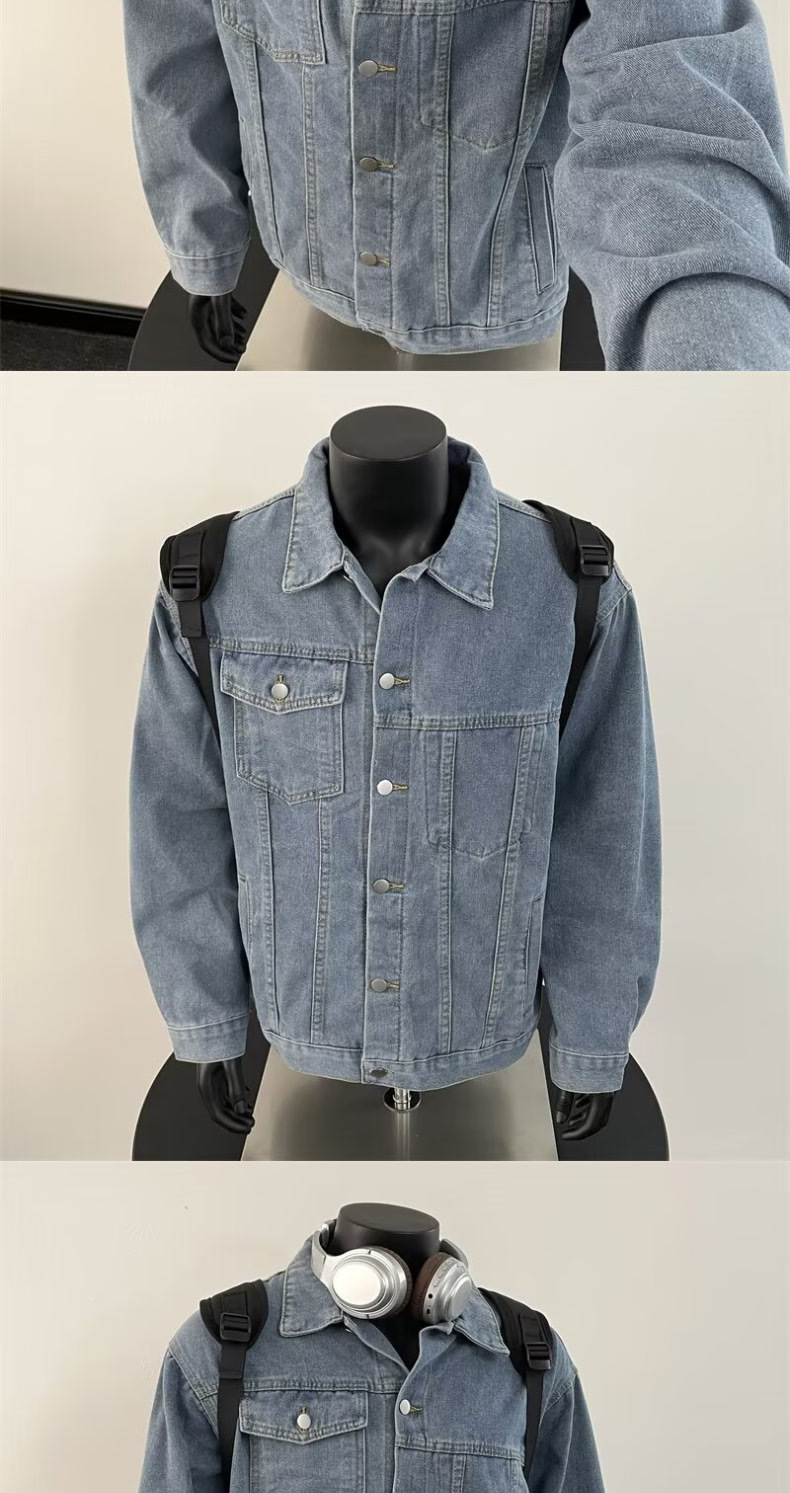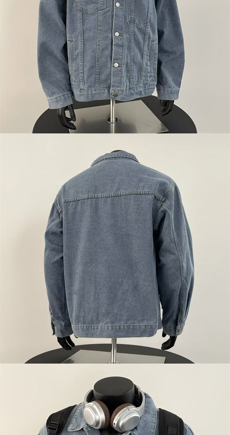 10 대 소년을위한 봄과 가을 데님 코트 아메리칸 스타일 레트로 옷깃 자켓 Ins 느슨한 데님 최고 트렌드스토어 가기