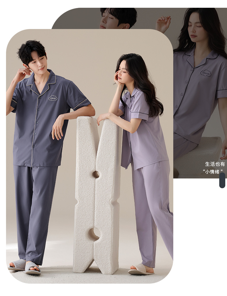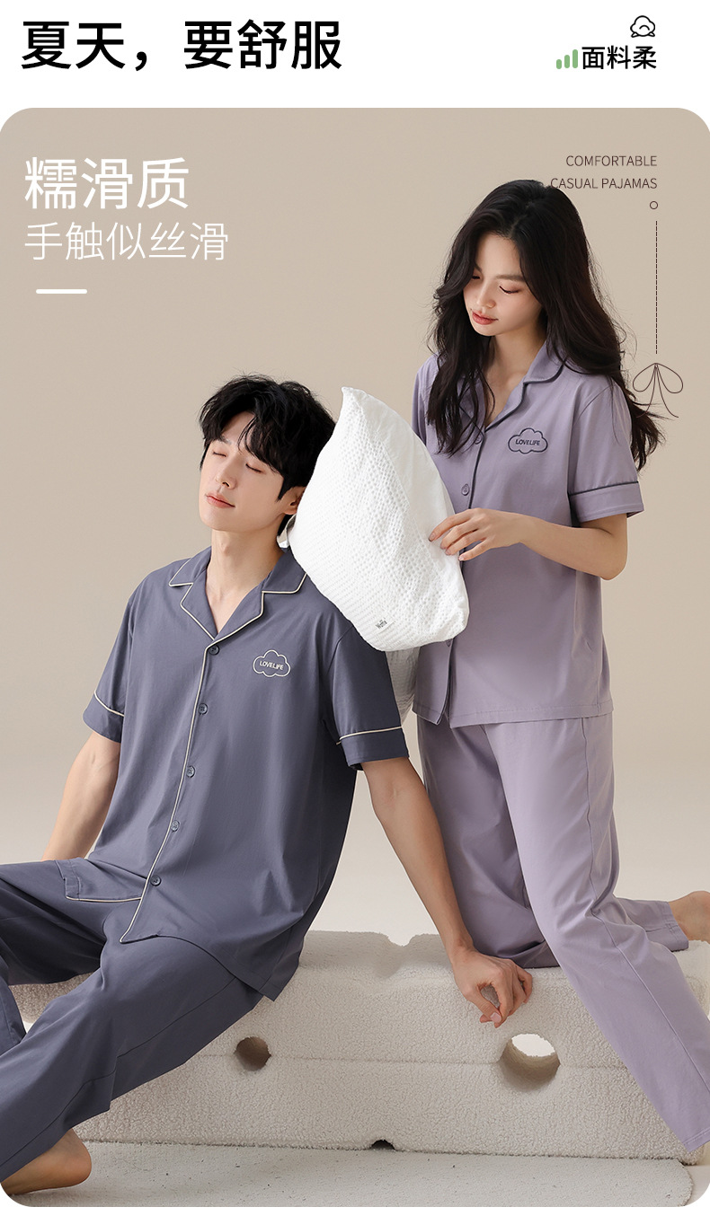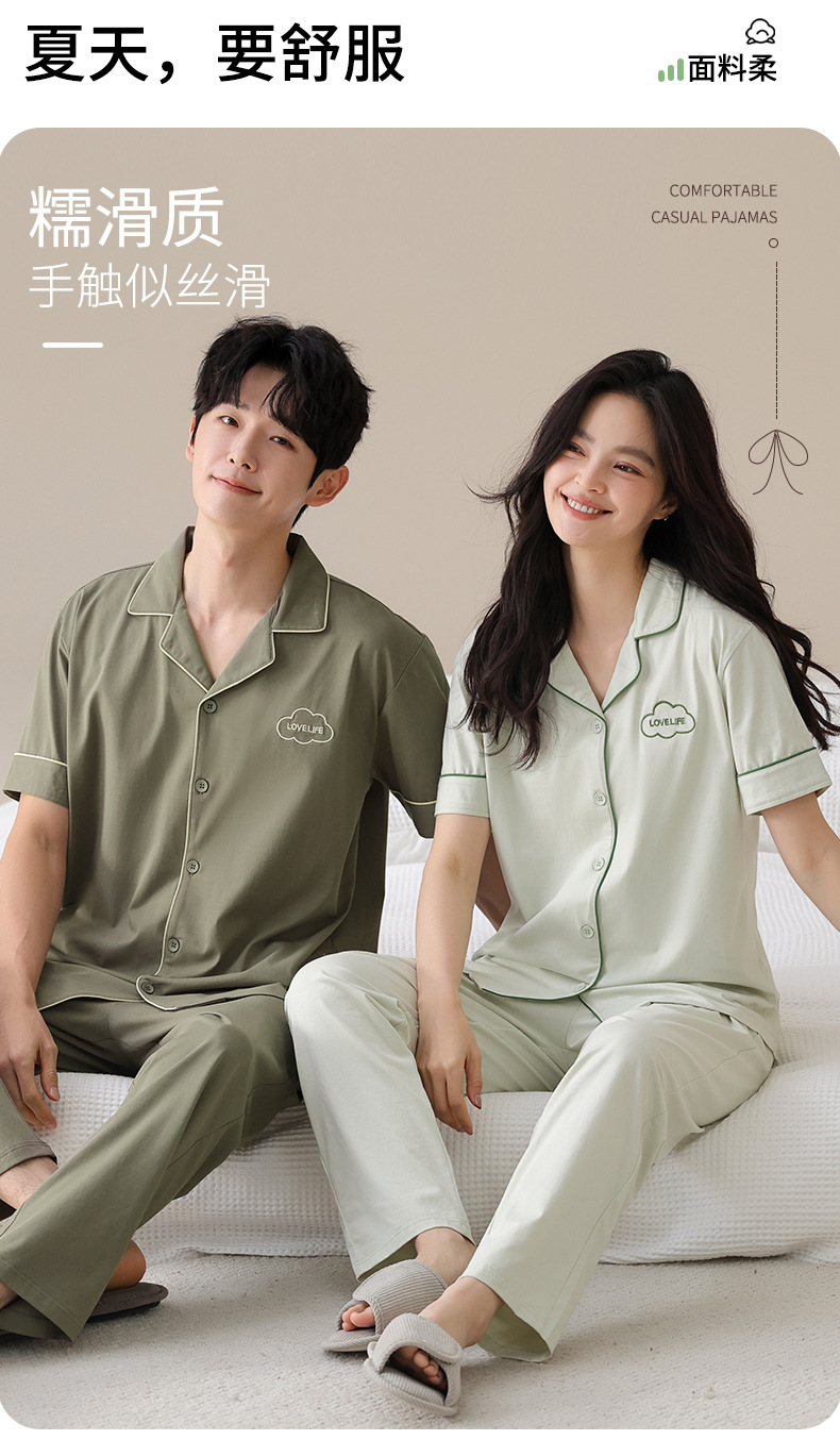 잠옷 커플의 봄과 여름 순면 반팔 바지 남자 카디건 얇은 여름 여성의 멋진 홈 의류 세트스토어 가기
