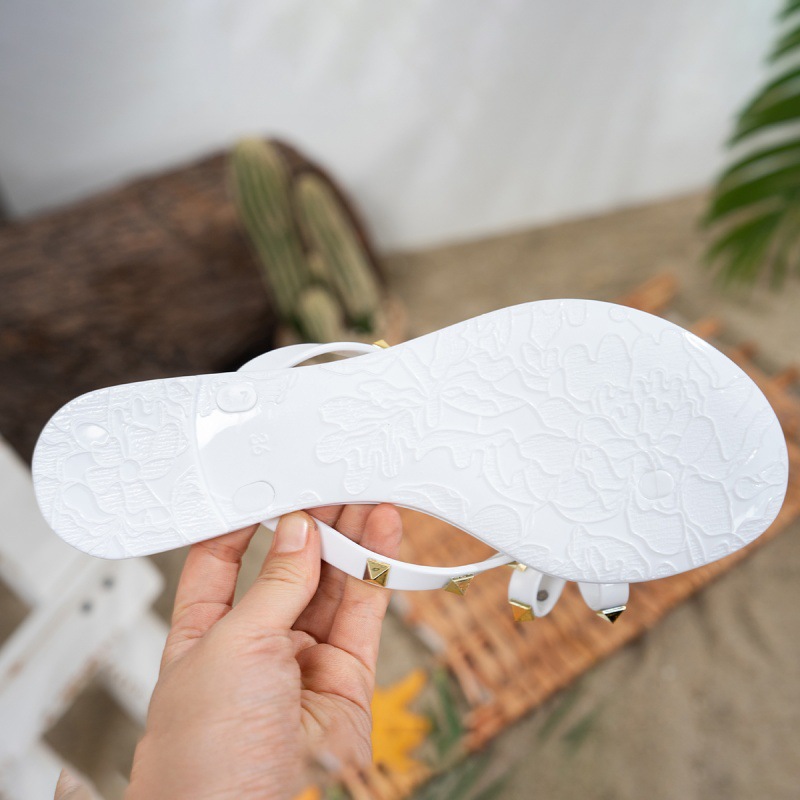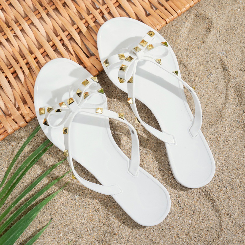 여름 새로운 젤리 리벳 샌들 플립 플롭 여성용 활 패션 플랫 플립 플롭 캐주얼 비치 슈즈
