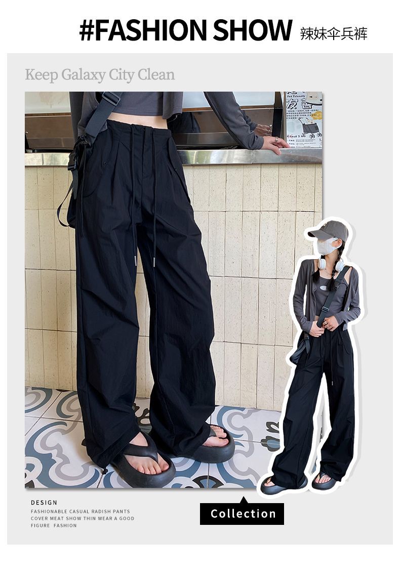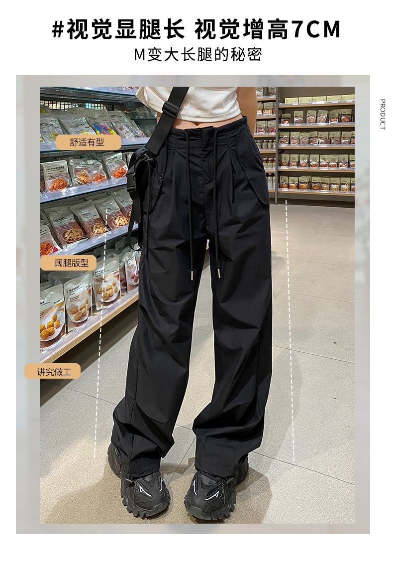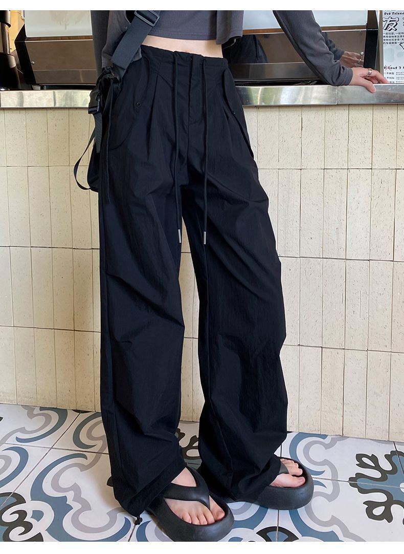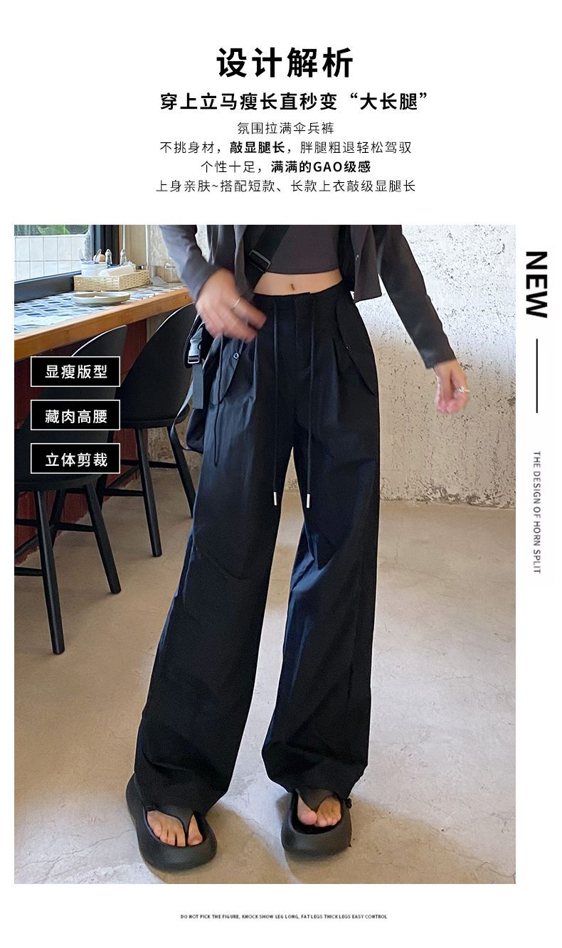 바지 여성 여름 2025 새로운 높은 허리 낙하산 바지 캐주얼 넓은 다리 바지 빠른 건조 미국 스포츠 바지 충전스토어 가기