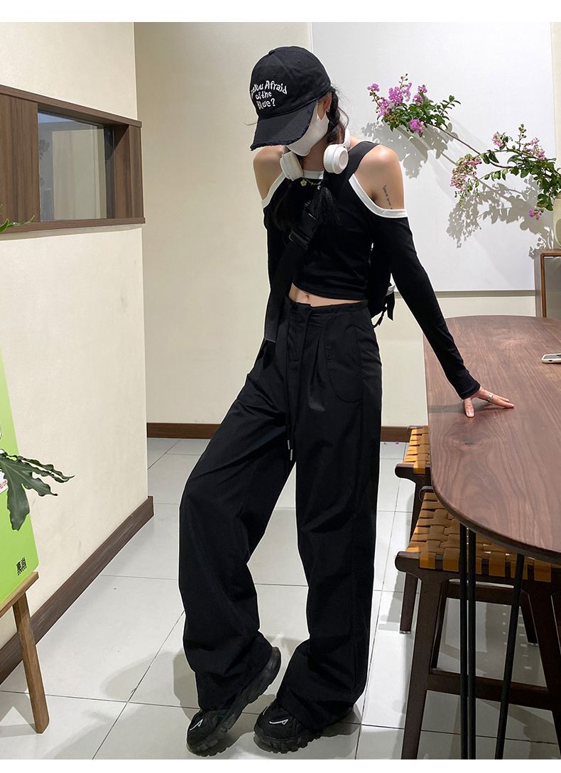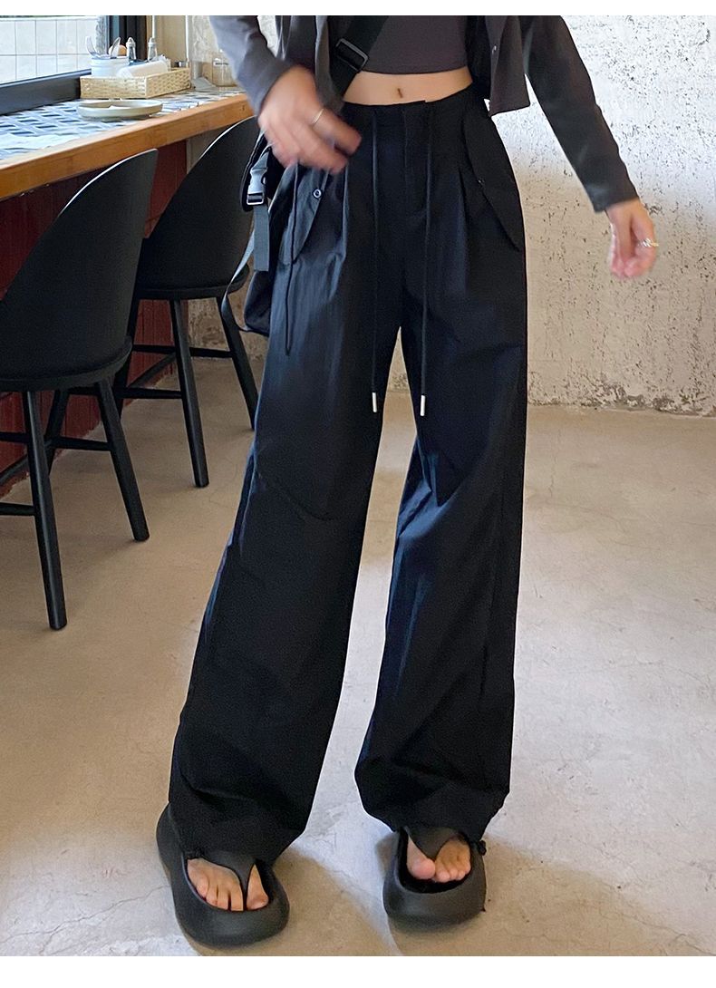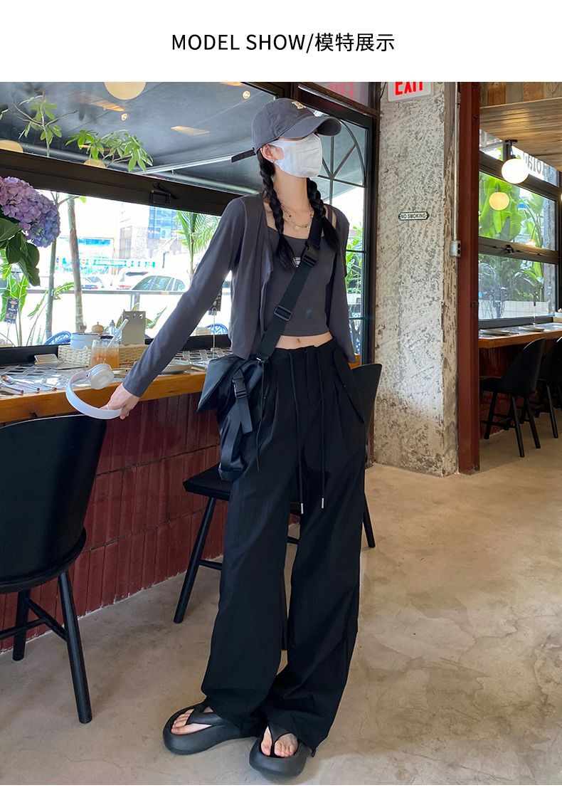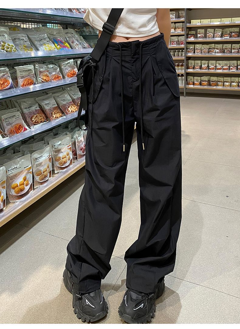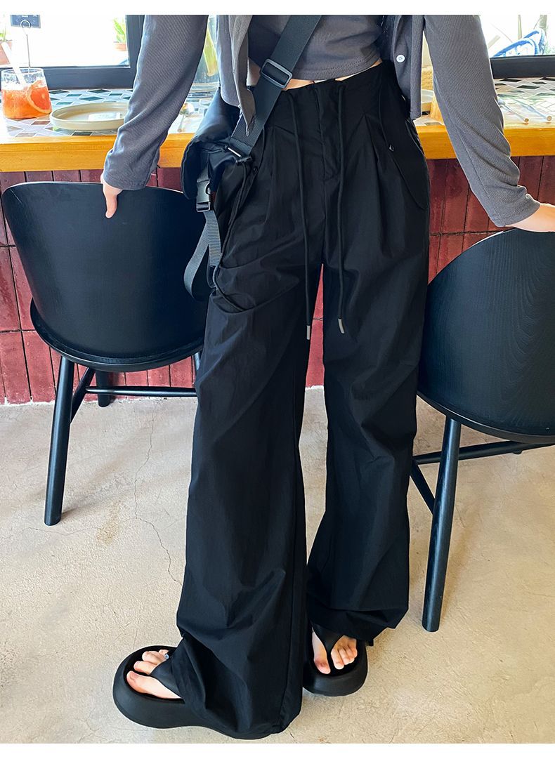 바지 여성 여름 2025 새로운 높은 허리 낙하산 바지 캐주얼 넓은 다리 바지 빠른 건조 미국 스포츠 바지 충전스토어 가기