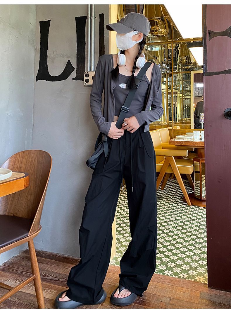 바지 여성 여름 2025 새로운 높은 허리 낙하산 바지 캐주얼 넓은 다리 바지 빠른 건조 미국 스포츠 바지 충전