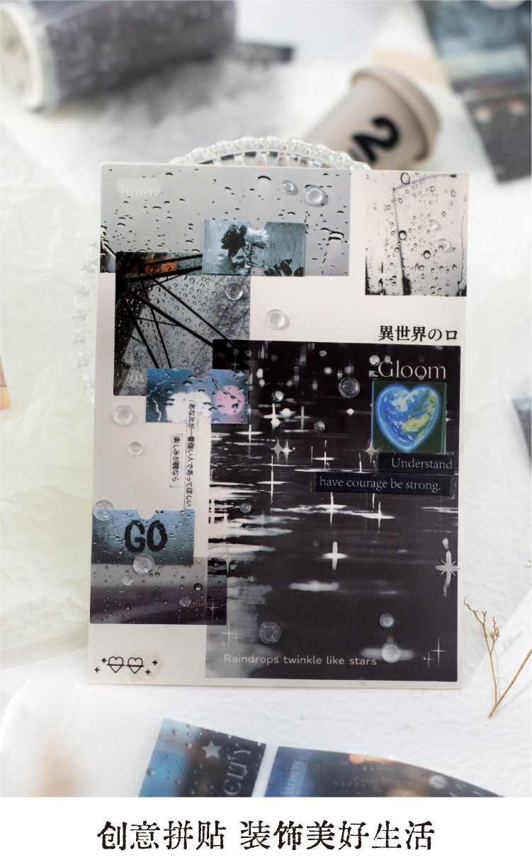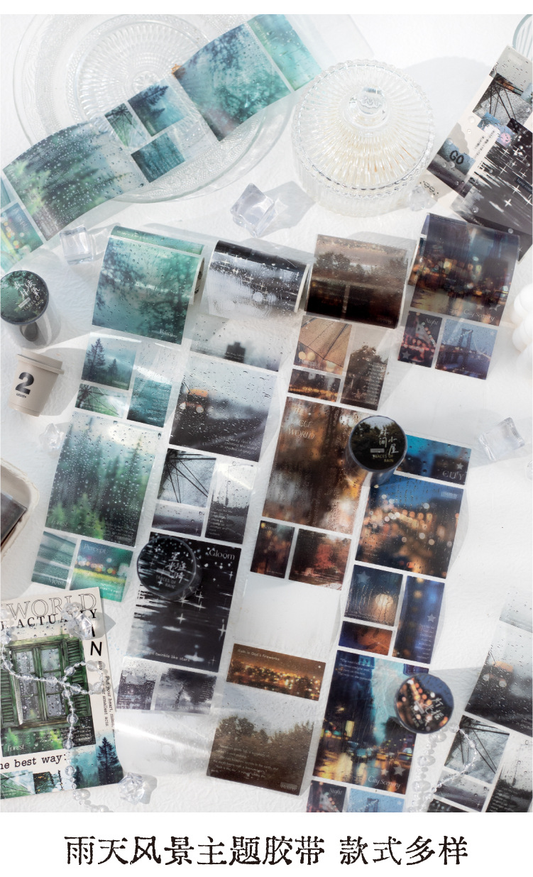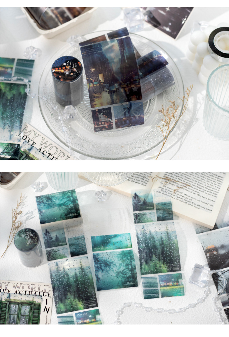 비 애완 동물 다이 커팅 테이프 레트로 숲 오두막 창 비 손 계정 콜라주 장식 장면 기본 자료스토어 가기