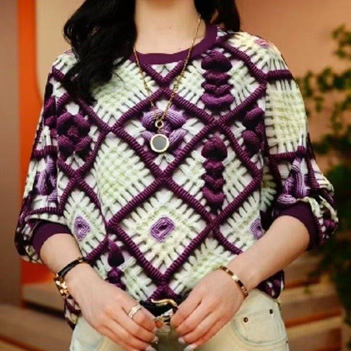 하이 엔드 라이트 럭셔리 세련된 여성 티셔츠 여름 새로운 느슨한 고기로 덮인 하이 엔드 스웨터 탑