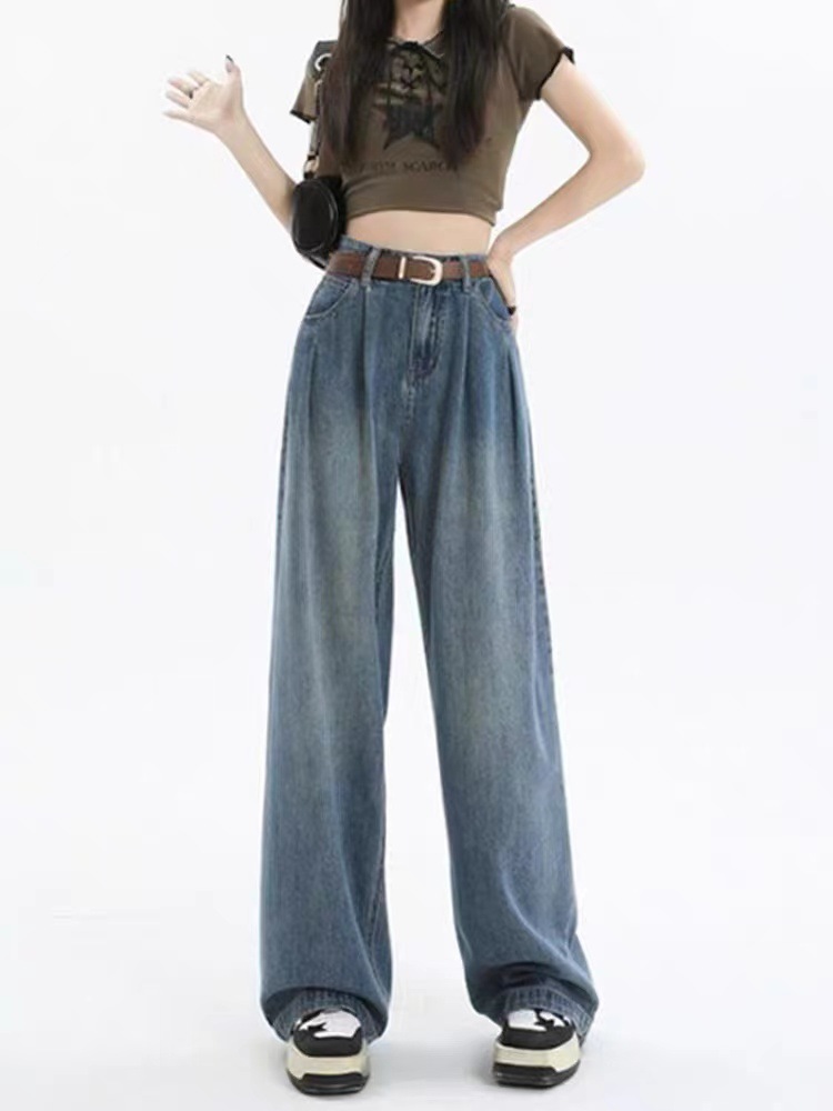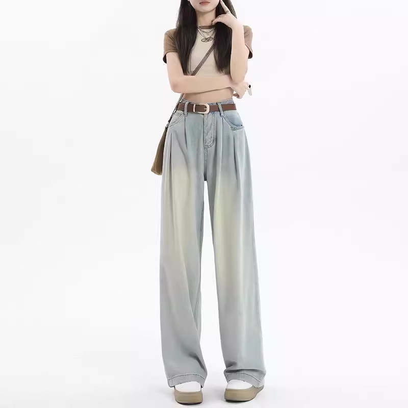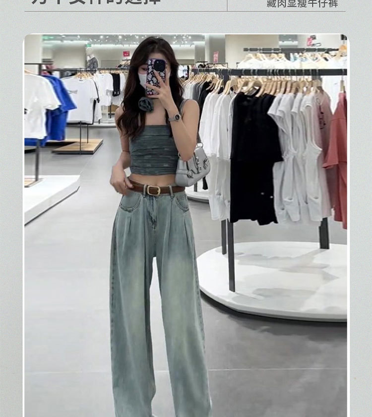 스트레이트 레그 청바지 여성용 여름 얇은 플러스 사이즈 통통녀 높은 허리 느슨한 투약 슬림 룩 키 넓은 다리 바지