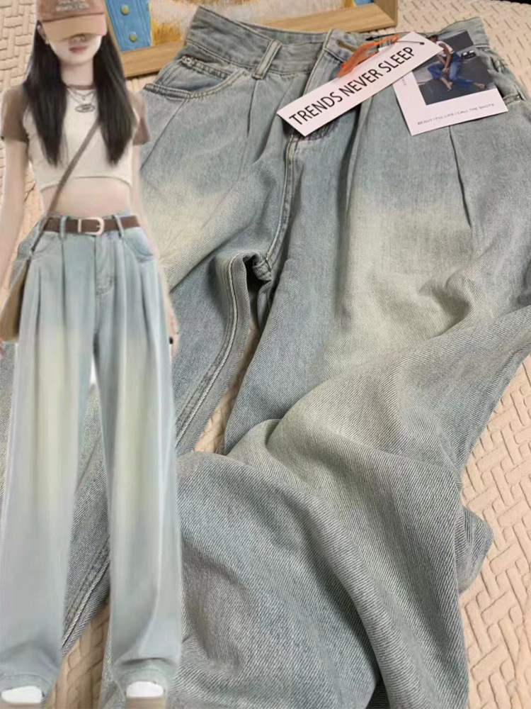 스트레이트 레그 청바지 여성용 여름 얇은 플러스 사이즈 통통녀 높은 허리 느슨한 투약 슬림 룩 키 넓은 다리 바지스토어 가기