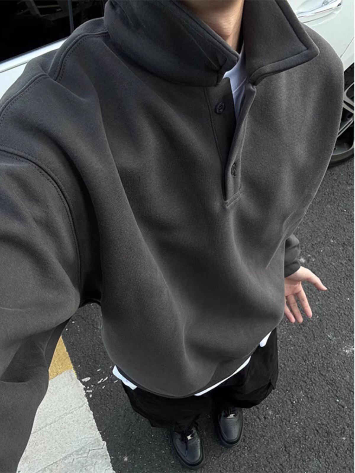 다크 그레이 폴로 칼라 스웨터 남자의 봄과 가을 하이 엔드 센스 내부 긴 소매베이스 셔츠 아메리칸 스타일 빈티지 옷깃 재킷