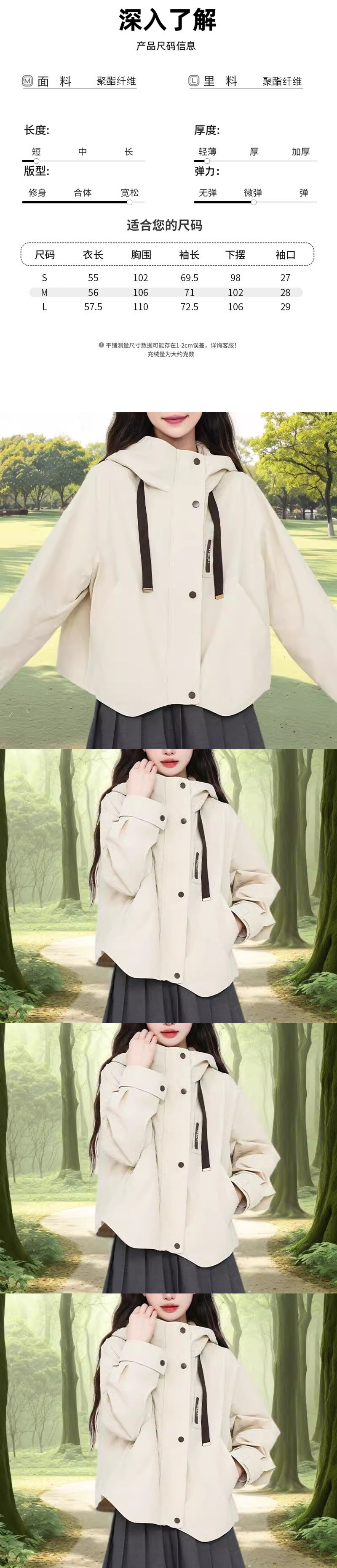2025 후드 충전 의류 여성의 짧은 야외 스포츠 등산 세트 재킷 캐주얼 최고 학생 Cm스토어 가기