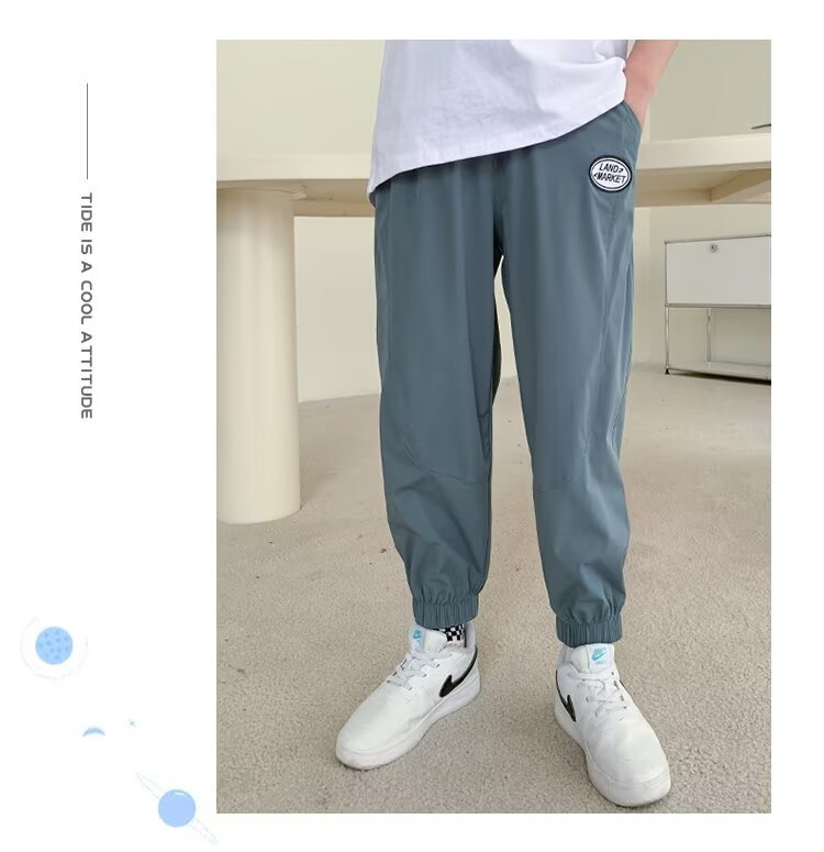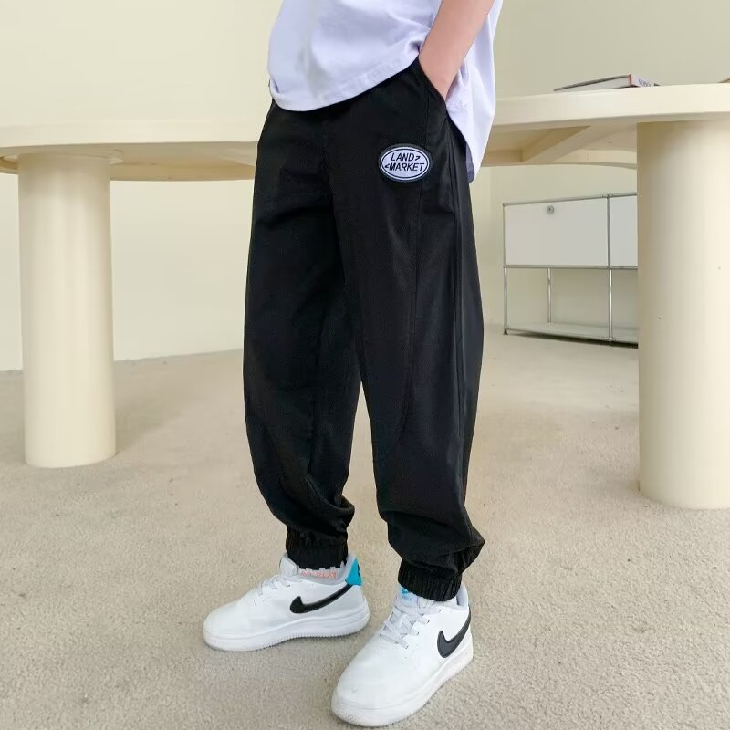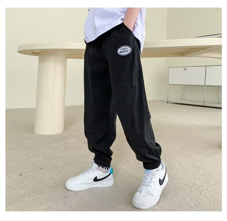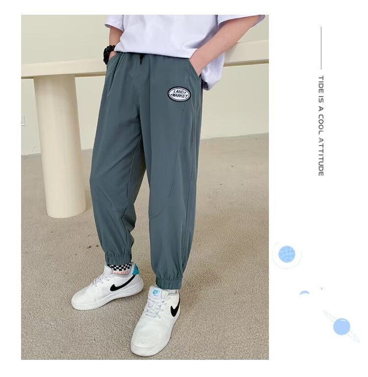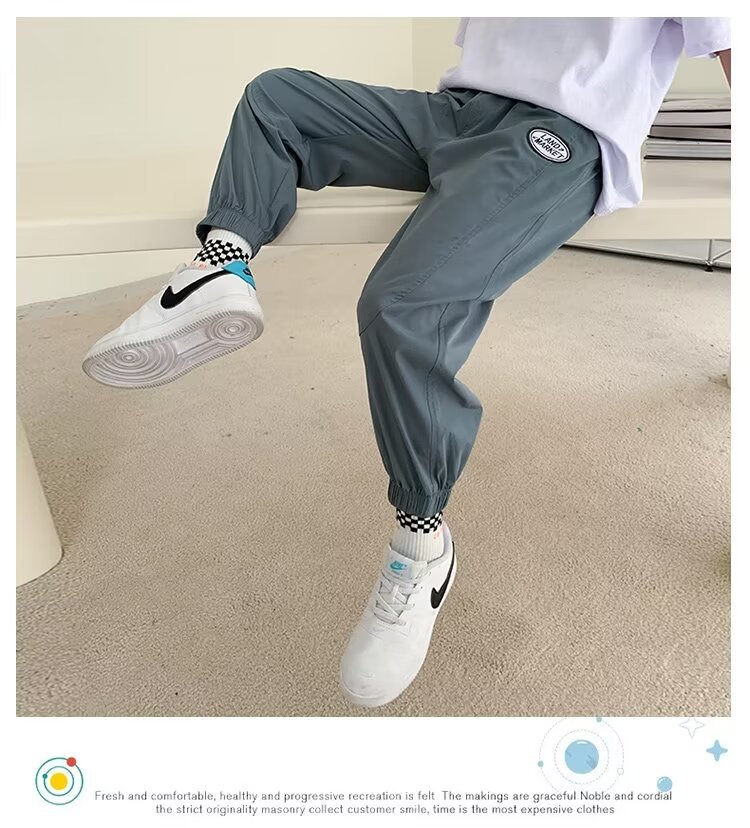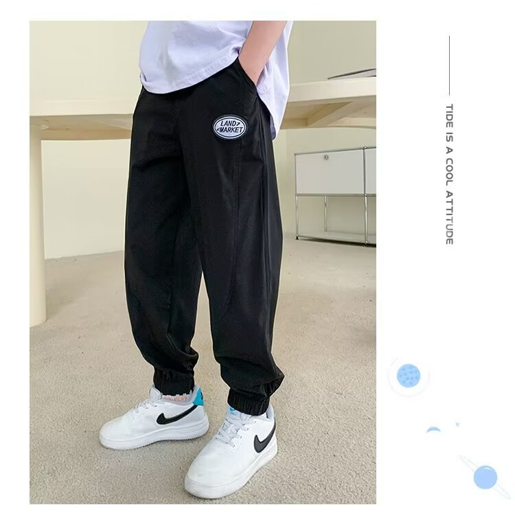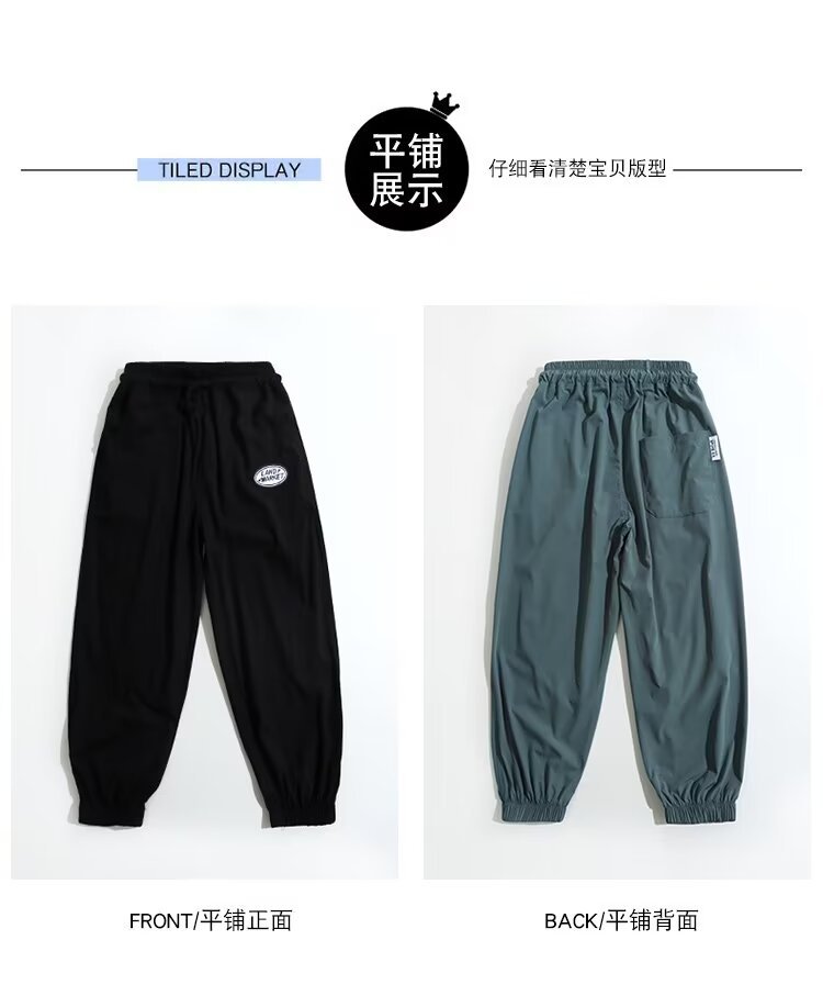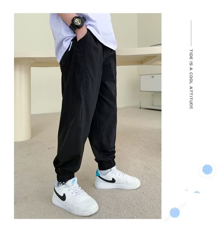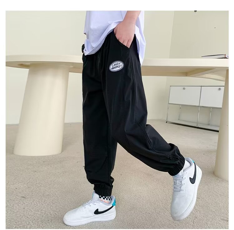 2025 여름 소년 캐주얼 바지 얇은 할란 바지 미국 스타일 레트로 레그 바지 올 매치 트렌디 그레이 블랙
